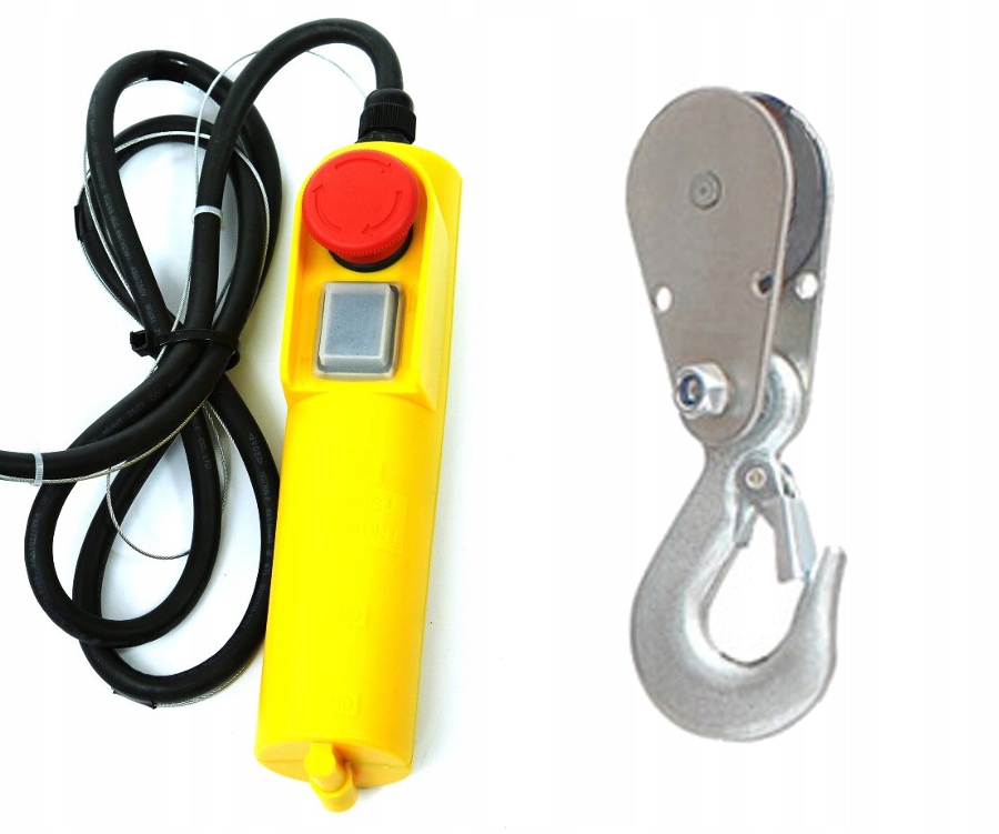 Прочный крюк легко крепится к грузу, имеется предохранительная защелка.
