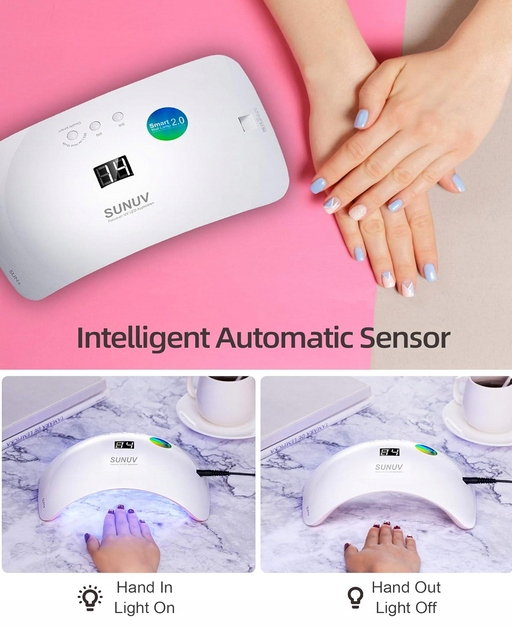 - Соглашение большинства гелевых лаков: световые шарики Sunuv принимают двойную длину оптической волны (365 нм + 405 нм), благодаря которой они работают со всеми гель -светодиодными лаками для ногтей, полосками для ногтей с гель -лаком, гель -лаками для ногтей и ультрафиолетовой смолой.