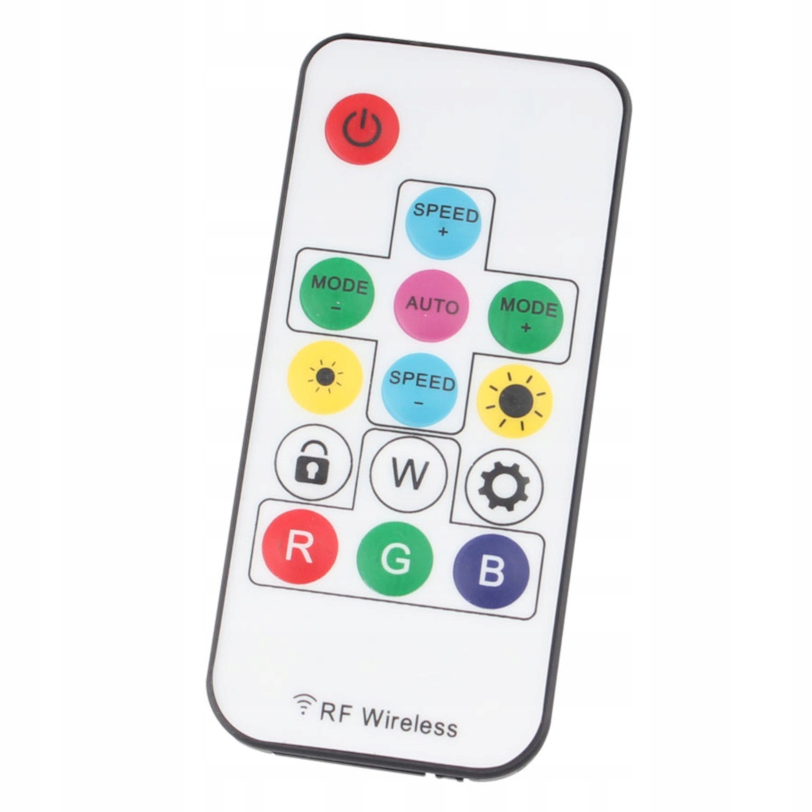 Радиоконтроллер для светодиодных лент RGB цифровой MAGIC WS2811 WS2812 с дистанционным управлениемRF. Легкое и быстрое управление освещением цифровых лент, лент или аналогичного цифрового RGB освещения! Идеально подходит для управления цифровыми RGB-лентами. Он позволяет управлять каждым светодиодным модулем отдельно. Он позволяет управлять путем изменения цвета, включения/выключения, установки яркости и скорости освещения, а также имеет 358 режимов, которые можно переключать с помощью соответствующих кнопок на пульте дистанционного управления.