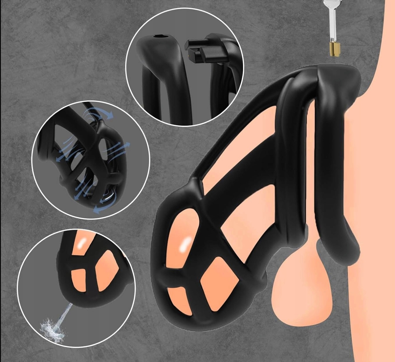 Это современный ремень добродетели из прочного материала. Осторожно воспроизводит линии полового члена, а наклон делает устройство не виден под одеждой.