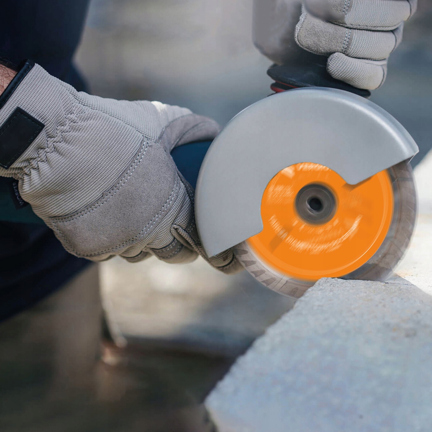 Диск совместим с угловыми шлифовальными машинами для сухой резки. Он имеет специальный сегмент под названием рифленый обод, который позволяет быстро и очень стабильно резать.