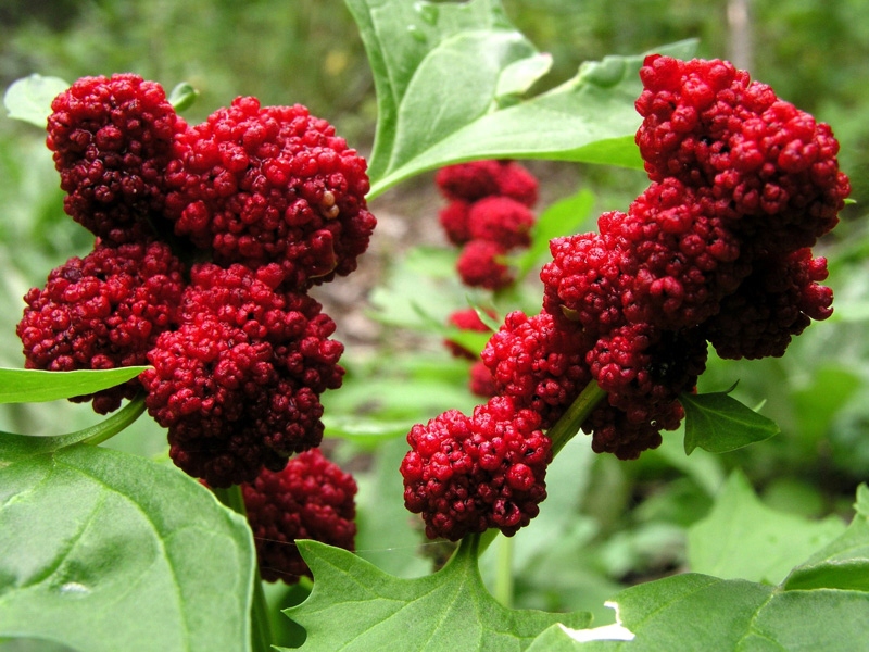 Интересное декоративно-овощное растение с побегами, покрытыми острозубчатыми листьями, из которых можно готовить как шпинат, так и красные съедобные плоды.