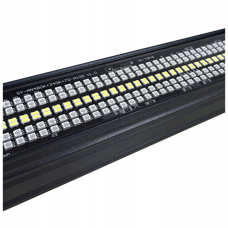 Компоненты Blinder были закрыты в сплошном металлическом корпусе . Его основная часть - светлая панель, которая управляет светом в цветовой палитре rgb+cw (красный, зеленый, синий, холодный белый) ✅. Он включает в себя светодиоды 480 (rgb) с патой 0,3, которые расположены в разделе 48 из 10 частей в верхней и нижней части лампольной панели. Дополнительный источник света - это поперечная полоса в центре световой панели, которая расположена 240 светодиодов SMD5730 (холодный белый) с мощностью 0,3 Васовой шерсти , распределенной в 24 секциях из 10 частей 10 частей .