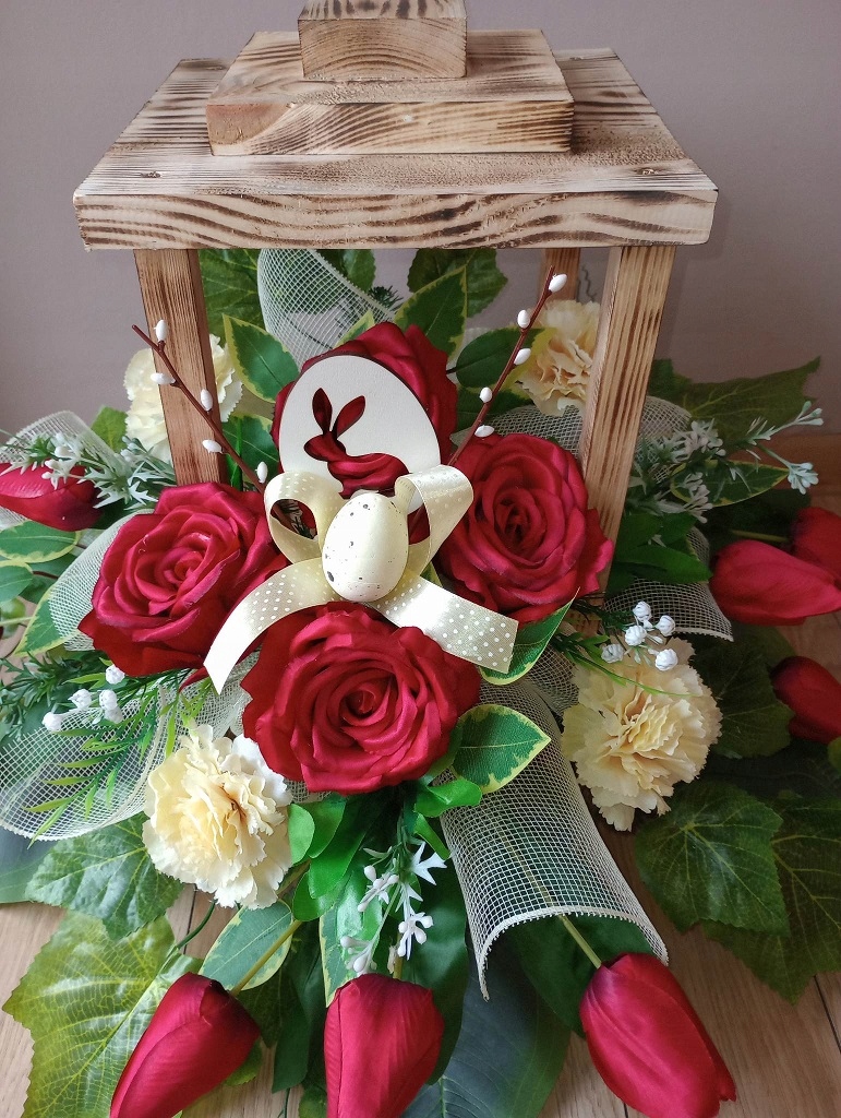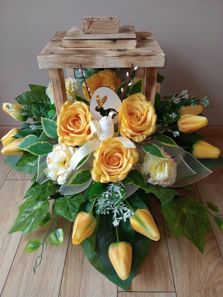 ИСКУССТВЕННАЯ КОМПОЗИЦИЯ С ФОНАРЕМ С ТЮЛЬПАНАМИ