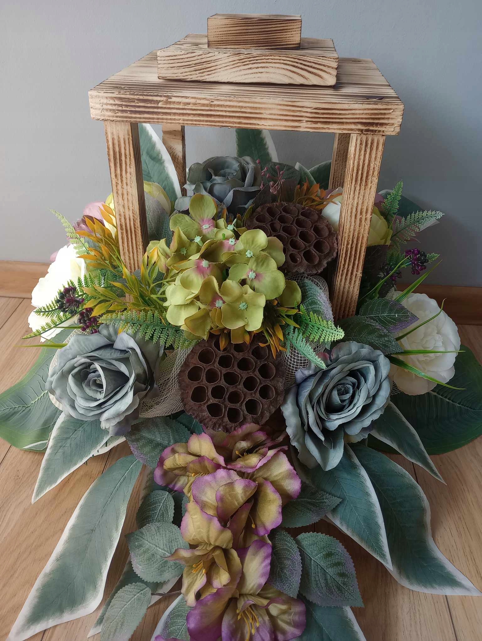 (цена для набора, состоящего из двух частей, то есть композиция в фонаре, чтобы положить на могилу и букет для вазы вместе)