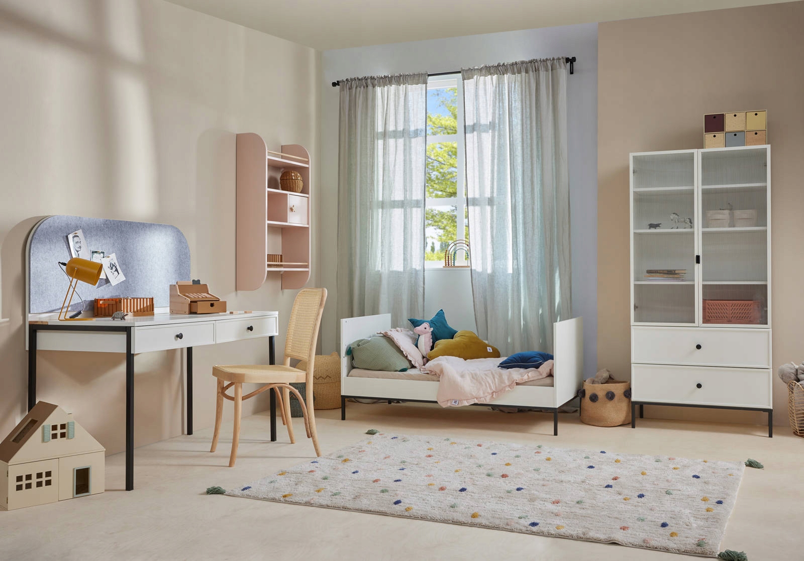 Коллекция минималистской, экологичной и простой детской мебели. Четкая геометрическая форма, обогащенная элегантными металлическими деталями. Скрытые подвижные элементы и звукопоглощающие панели стола обеспечивают достаточный комфорт и безопасность.