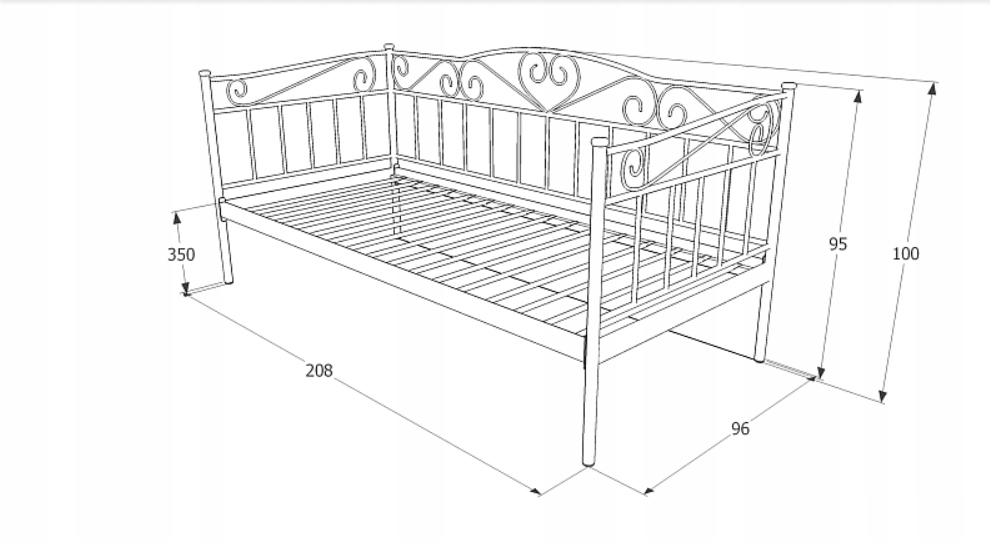 Металлическая кровать Burma имеет размеры 208 x 96 x 100 см и подходит для матраса размером 90 x 200 см. Кровать легко собрать и очистить, достаточно протереть ее влажной тряпкой. В комплект кровати не входит матрас, который необходимо приобретать отдельно.