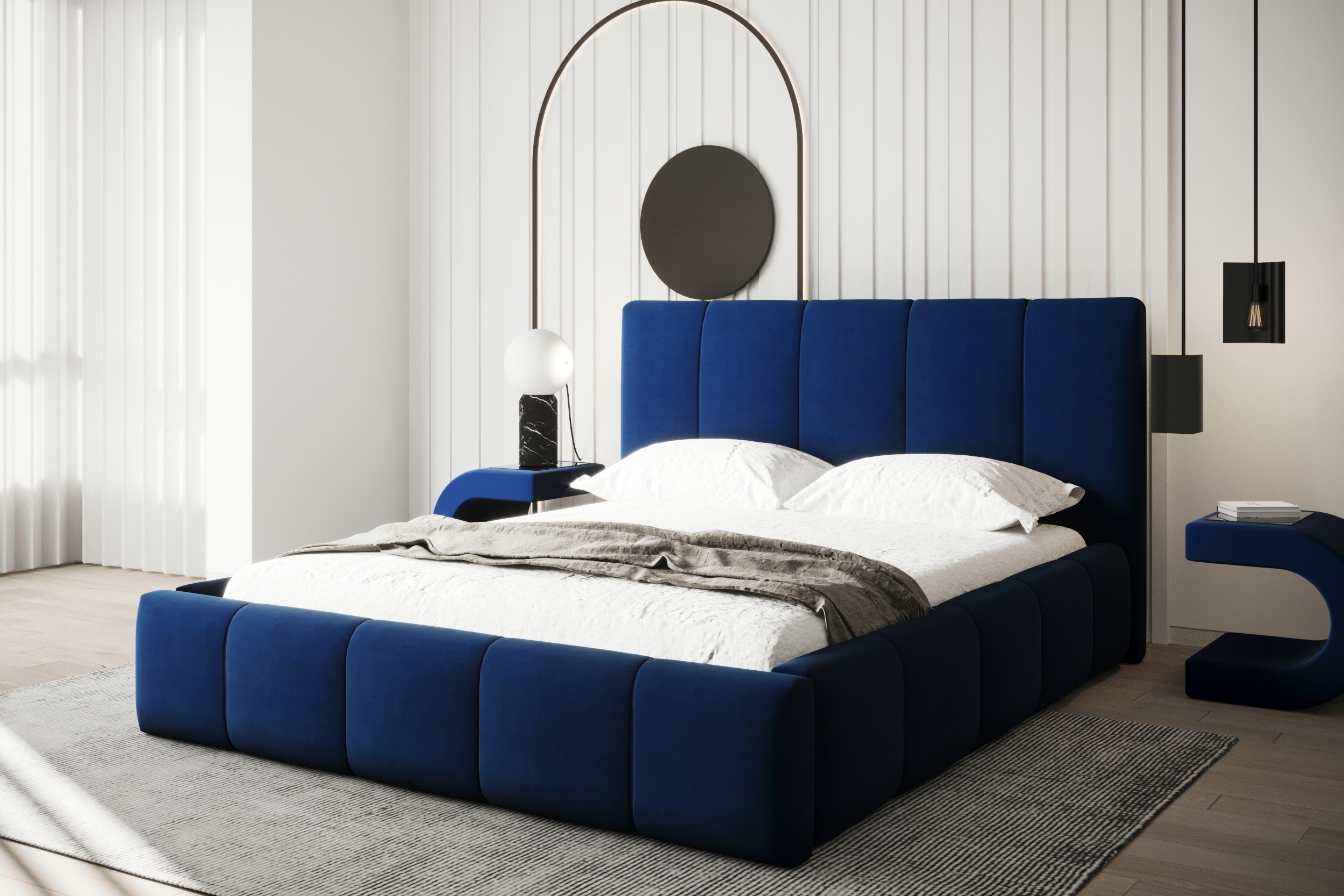 Кровать с мягкой обивкой MEDIOLAN привлекает внимание своим внешним видом. Массивный подголовник придает ему характер и создает впечатление уюта и мягкости.