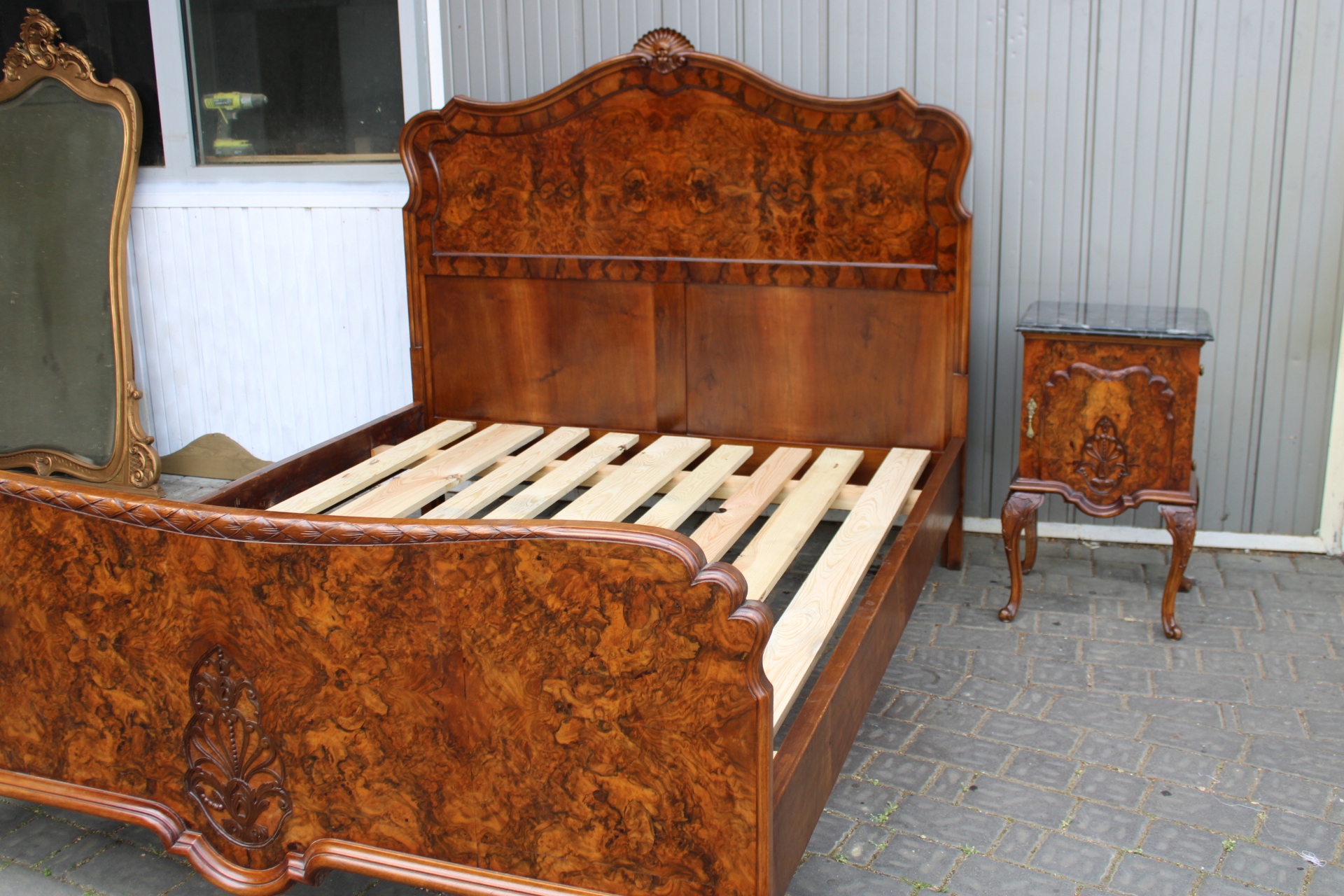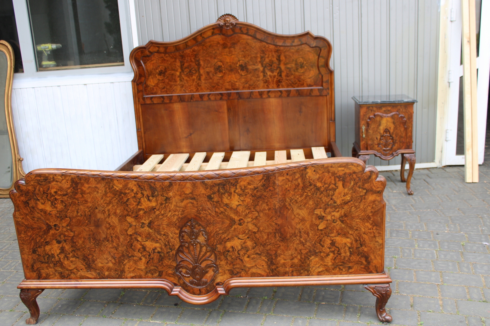 КРАСИВАЯ КРОВАТЬ С ПРИТУМБОЧКОЙ И НОВЫМ РАМКОМ, СОХРАНЕННАЯ В ХОРОШЕМ ПЕРВОНАЧАЛЬНОМ СОСТОЯНИИ