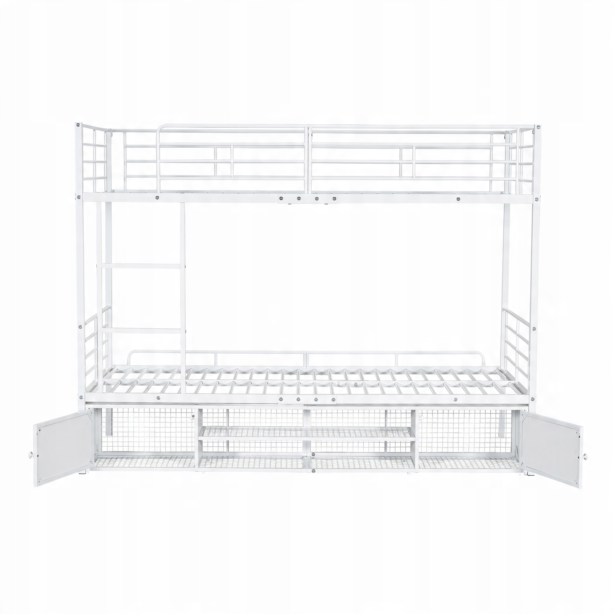 Кровать с железным каркасом, двухъярусная кровать, открытый шкаф для обуви, небольшой двухдверный шкаф для хранения вещей, подходит для детей и подростков, детская кровать с боковой лестницей, с решеткой против падения, железо, белый, 90х200см b >