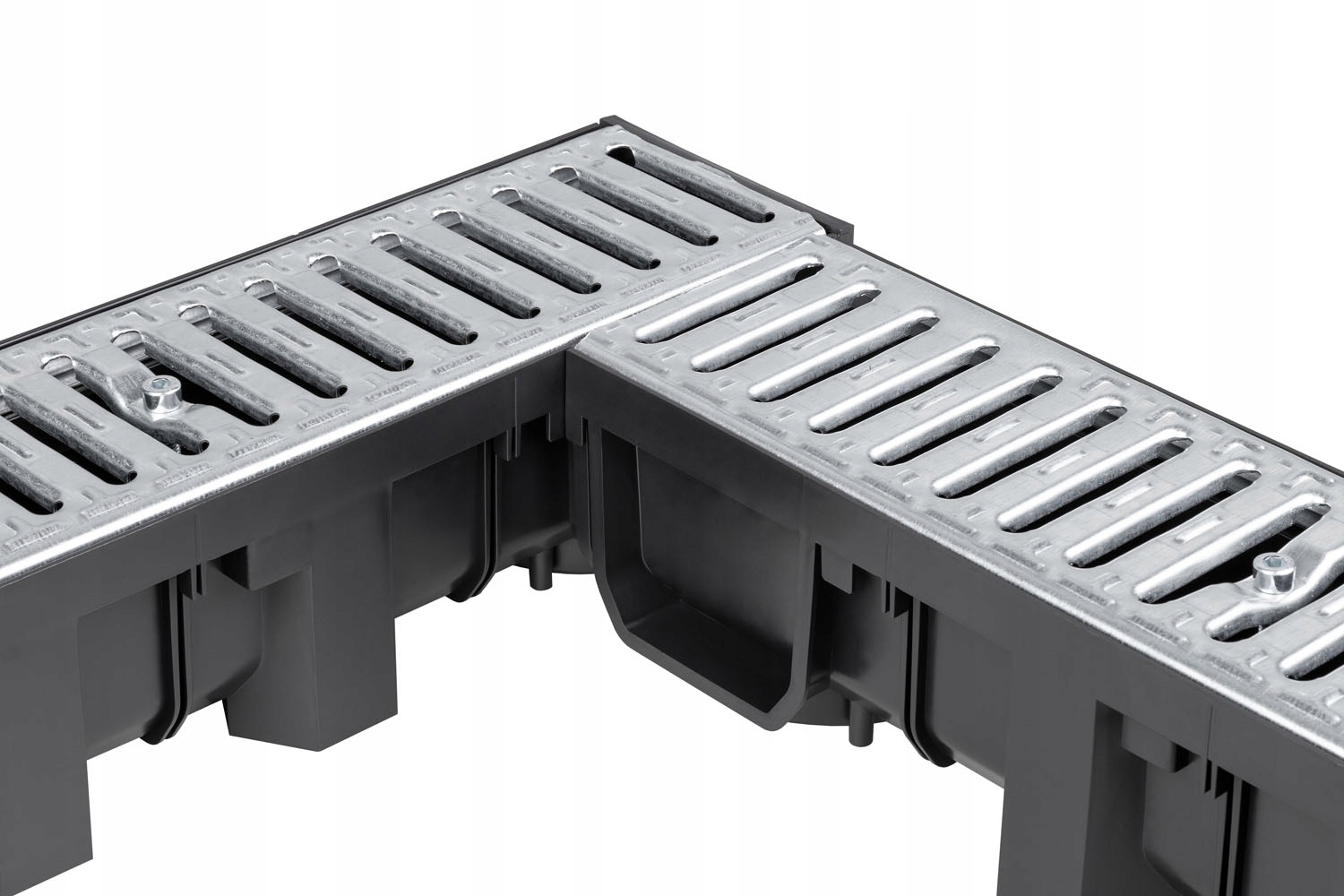 Дренажные каналы (каждый длиной 1 м) могут соединяться друг с другом, образуя секции длиной в несколько метров для отвода дождевой воды. Лоток изготовлен из высококачественного пластика (Полипропилена), что делает его устойчивым как к высоким, так и к низким температурам и не деформируется. Оцинкованная решетка устойчива к коррозии и погодным условиям. Заглушка позволяет завершить дренажный желоб канала, а нижний слив позволяет соединить трубу отвода дождевой воды с канализацией.