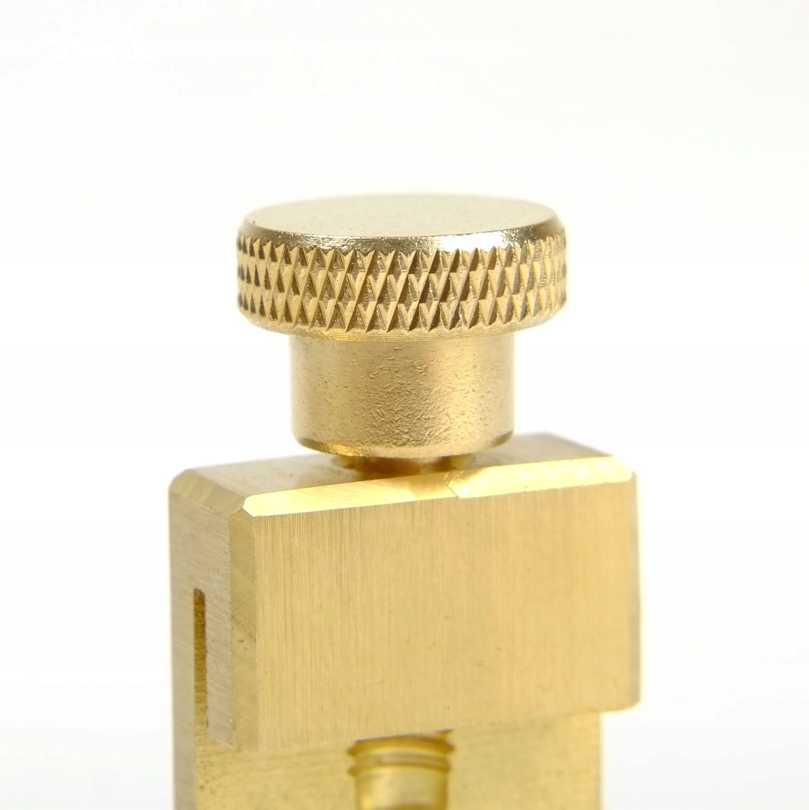 Латунная остановка позволяет быстрому маршруту параллельно краю и настройки точек в диапазоне от 0 до 305 мм. Блокирование ограничителя состоит в том, чтобы затянуть ручку.