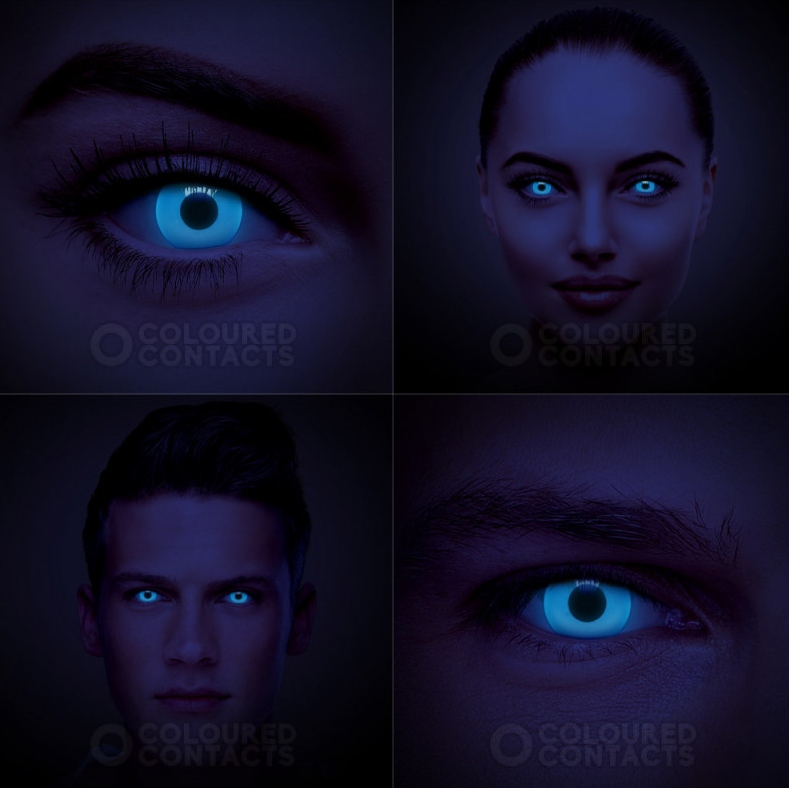 ColourVue Glow — линзы, которые идеально подходят для Хэллоуина или как часть костюма для косплея. Благодаря им вы выделитесь из толпы одним своим светящимся в темноте образом — и все это благодаря ультрафиолетовым лучам.