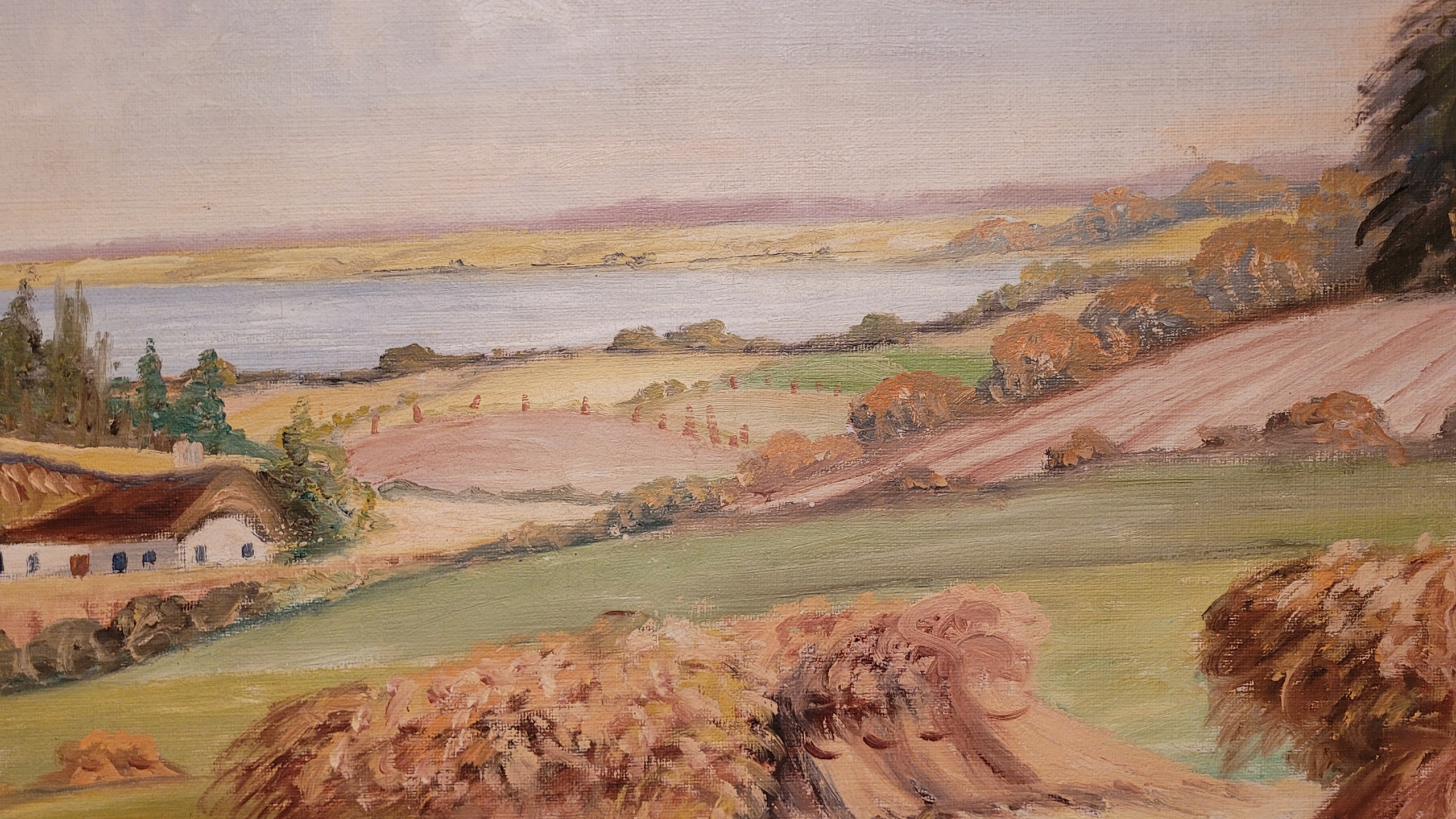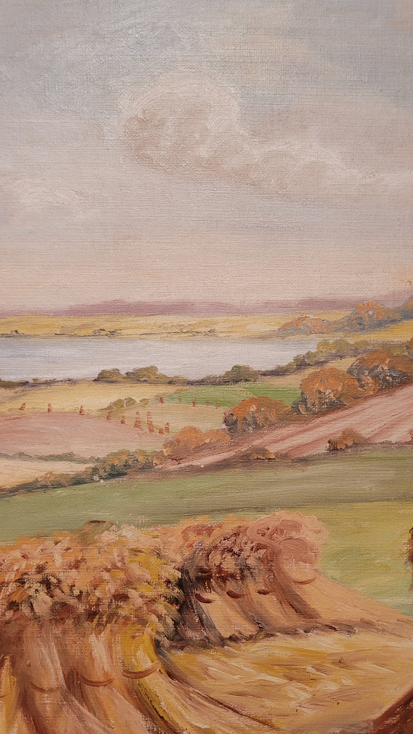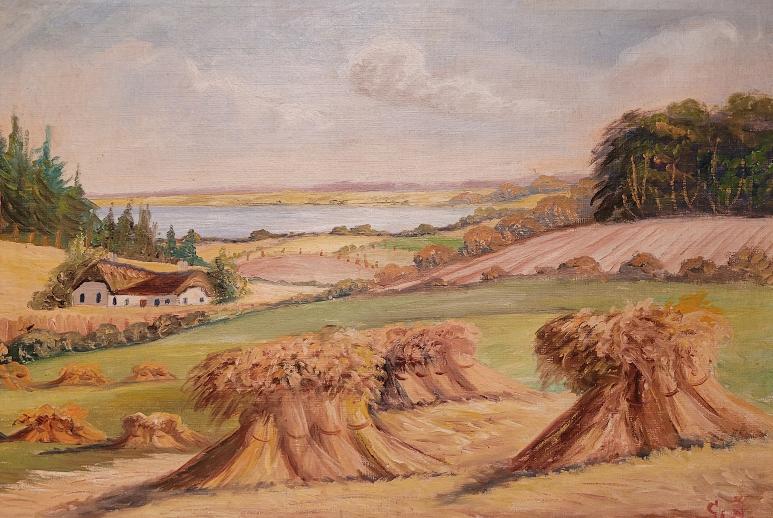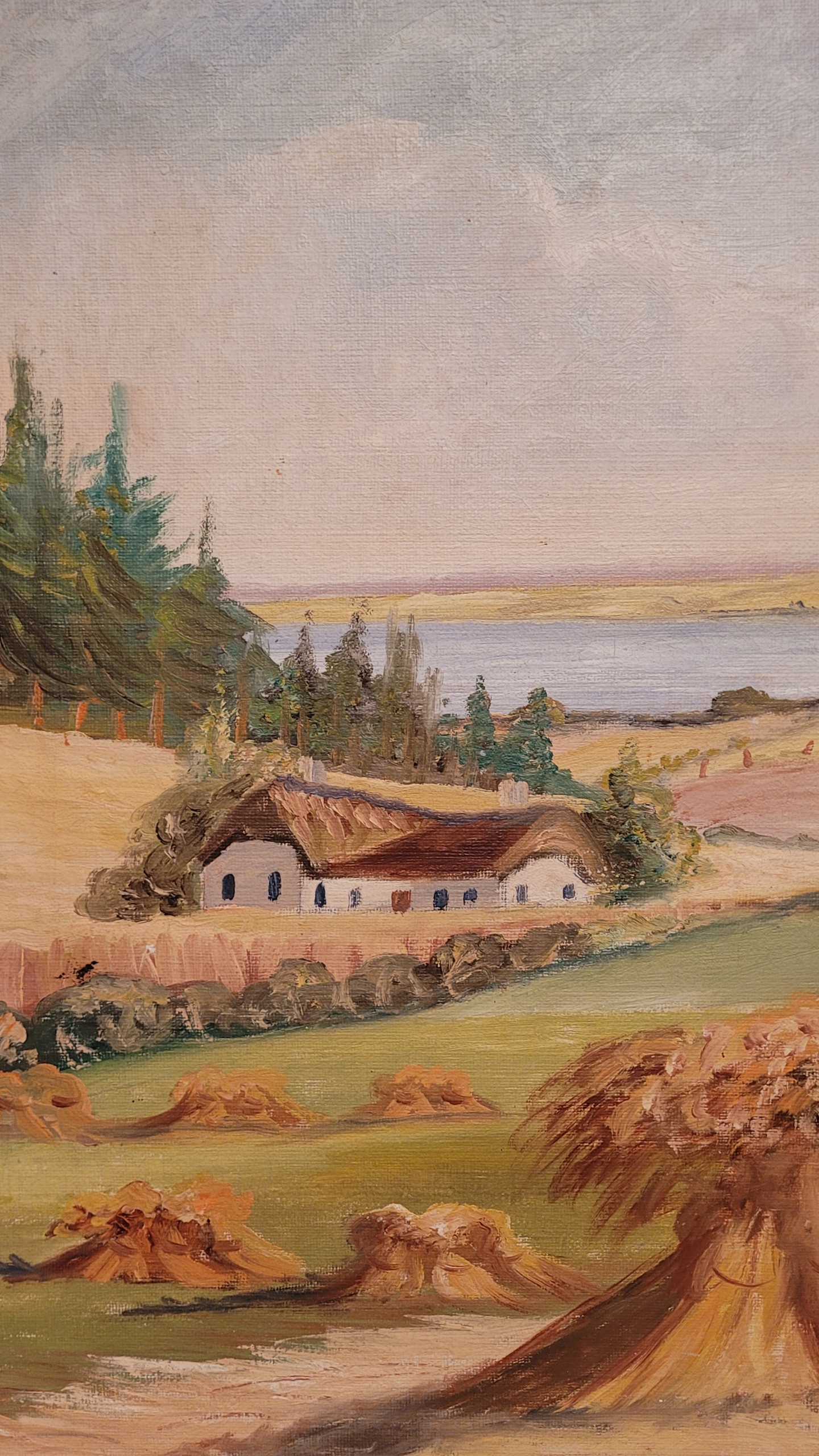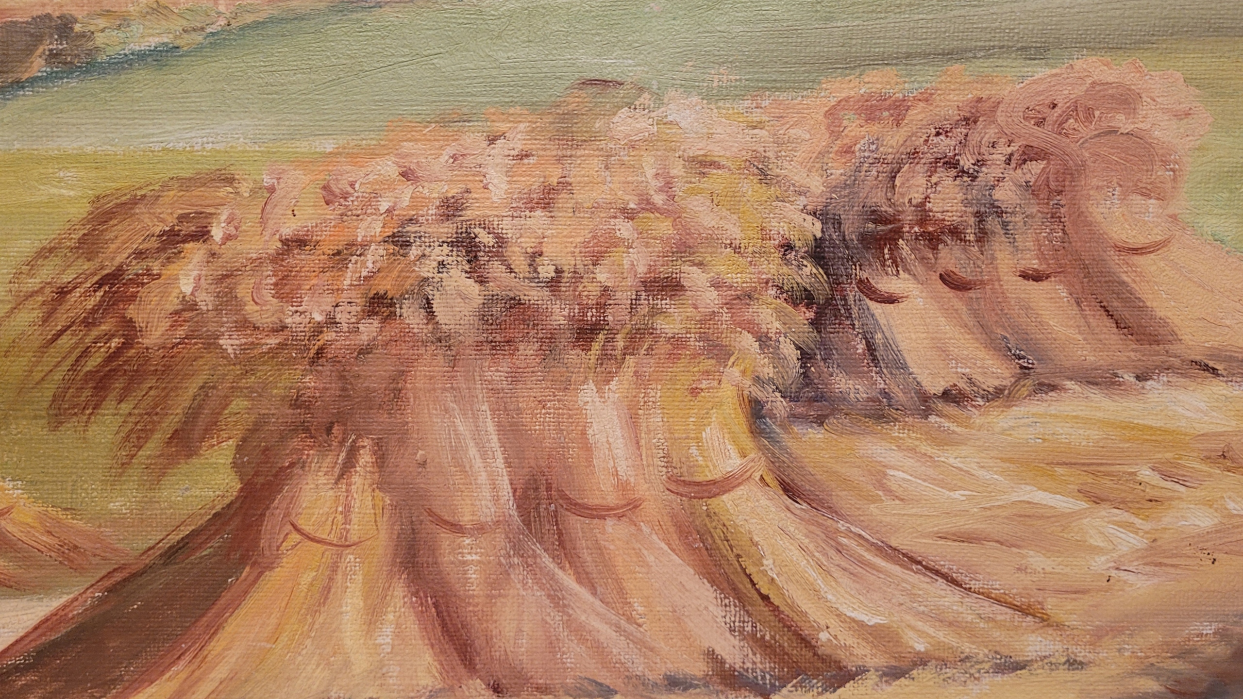 «Летний пейзаж - урожай» - старая, подписанная нефтяная картина.