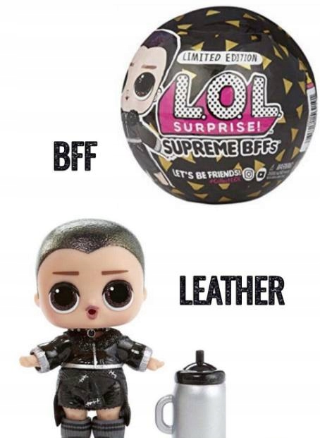 L.O.L. Сюрприз! Кожаная кукла Supreme BFF с головы до пят одета в крутой черный наряд. Крутой черно-серебристый вид делает его самым умным из L.O.L. кукла в городе.