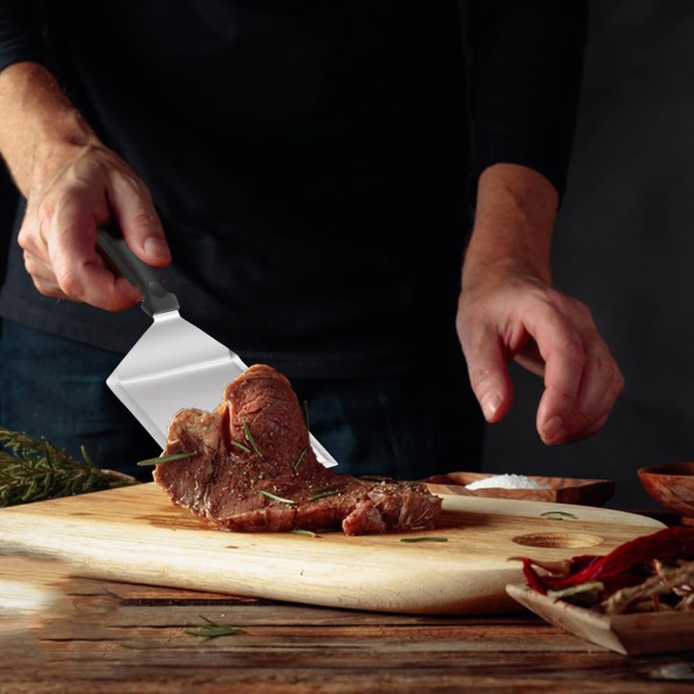 <р> 【Очень широкая лопатка】Шпатель имеет очень широкую конструкцию, что делает ее идеальной для переворачивания и переворачивания крупных предметов, таких как рыба, гамбургеры и омлеты. <р> 【Материал из нержавеющей стали】 Лопатка, изготовленная из высококачественной нержавеющей стали, прочна и долговечна, даже при использовании на горячих грилях и пластинах для гриля. <р> 【Пластиковая ручка】Прочная пластиковая ручка обеспечивает удобный захват и остается прохладной, что обеспечивает безопасное и простое обращение во время приготовления пищи. <р> 【Легко чистить】Материал из нержавеющей стали и гладкая поверхность позволяют легко мыть лопаточку как вручную, так и в посудомоечной машине, что экономит ваше время и усилия. <р> Скошенные края. Скошенные края лопаточки для гриля позволяют ей легко скользить под пищей и гарантировать, что на сковороде ничего не останется. Скошенное лезвие эргономично спроектировано и позволяет легко поднимать приготовленную пищу. <р> Технические характеристики: <р> Материал: нержавеющая сталь + ПП <р> Цвет: черный + серебро <р> Особенности: легко чистить, удобно держать <р> Размеры (прибл.): (Д х Ш) 31,7 х 13 см. <р> В комплект входит: <р> 1 лопатка для гриля. <р> Примечание: <р> 1. Из-за различных условий освещения и настроек монитора реальный цвет изделия может отличаться от представленного на фотографии. <р> 2. Из-за ручного измерения размеры могут отличаться на 1-2 см.✅Параметры продукта