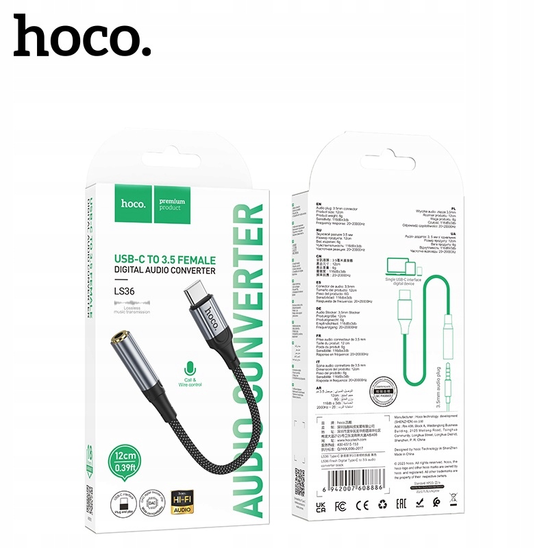 хоко. LS36 Fresh — цифровой аудиоадаптер/конвертер/адаптер с разъемом AUX Jack 3,5 мм и USB Type-C, предназначенный для подключения кабельных наушников любого типа с разъемом Audio Jack 3,5 мм, с поддержкой микрофона и пульт дистанционного управления музыкой и вызовами для мобильных устройств без разъема для наушников.