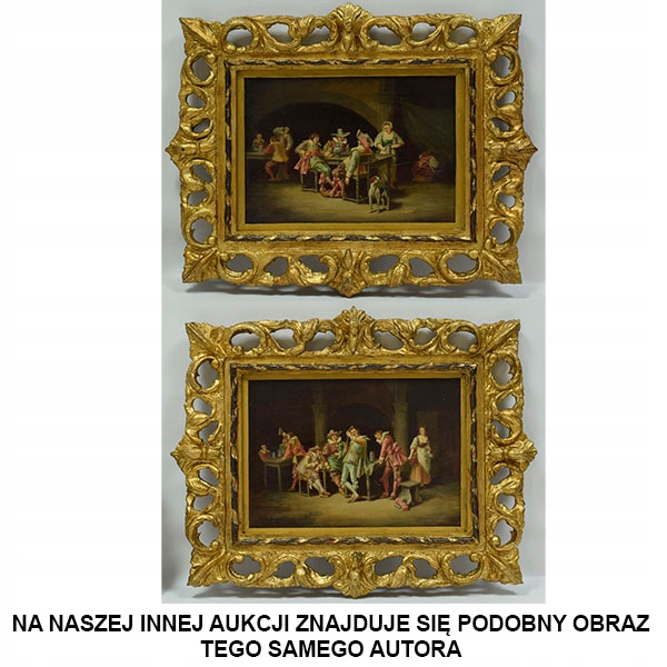 Старая картина Жанр сцена Вечеринка в гостинице Масло 69х55см