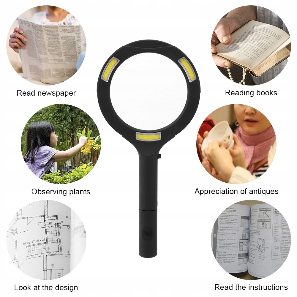 ПРОФЕССИОНАЛЬНАЯ БОЛЬШАЯ РУЧНАЯ УВЕЛИЧНОСТЬ С 3 СВЕТОДИОДАМИ 3X / 80 мм (115 мм с рамкой)