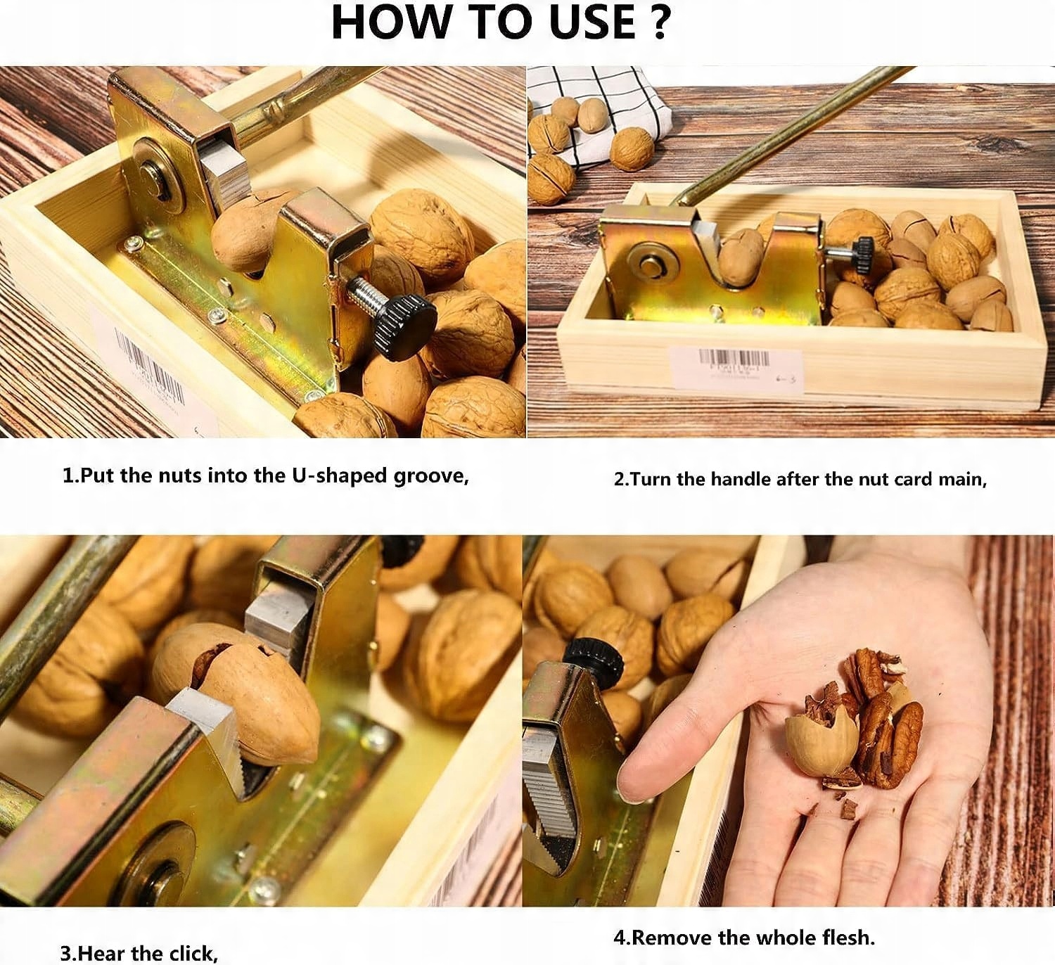 Благодаря своей особой конструкции щелкунчик точно раскалывает скорлупу, не повреждая ценную мякоть. Благодаря этому семена остаются целыми и сохраняется вкус.