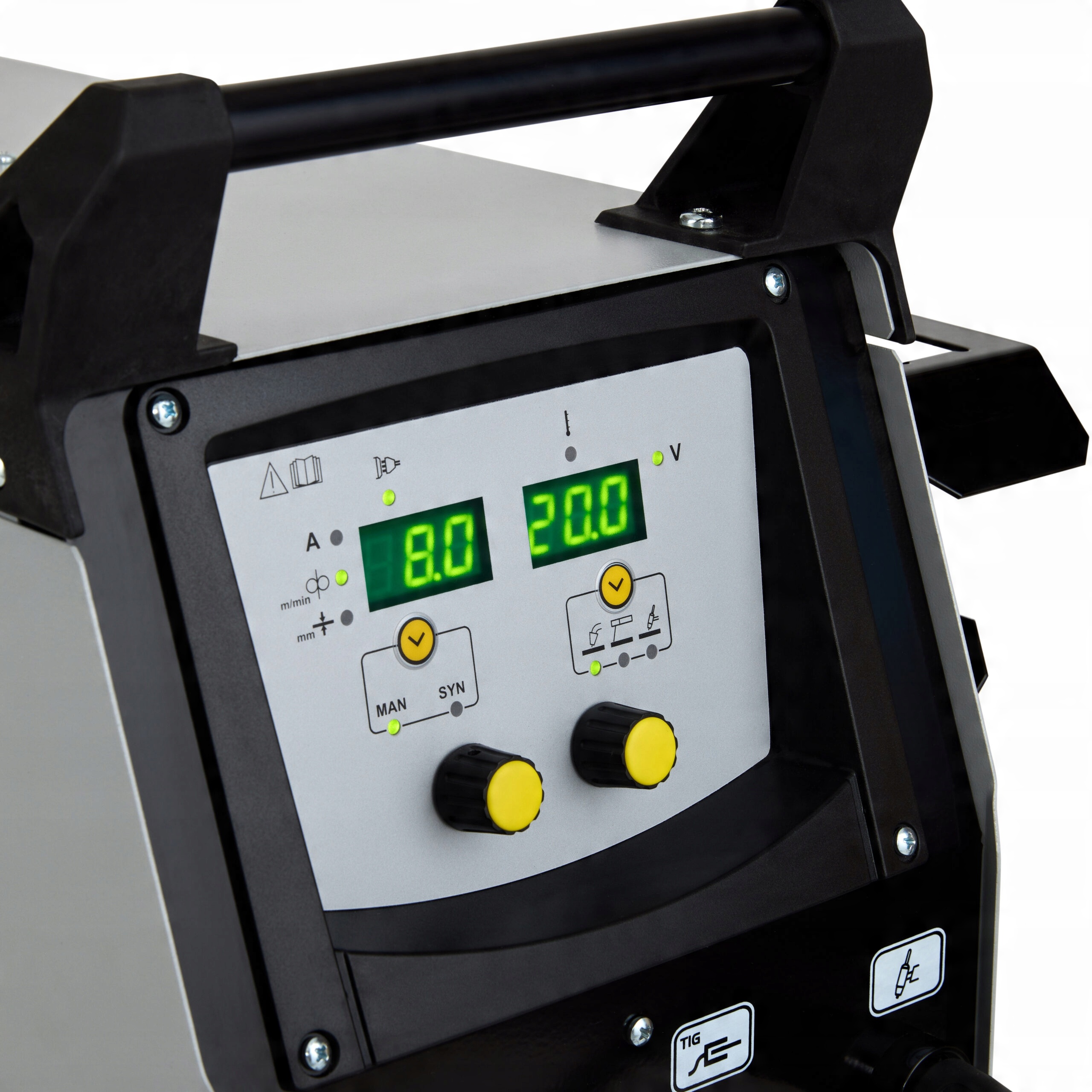 Easy One 200 LAB — идеальный инверторный сварочный аппарат для многих процессов в любом хорошо оборудованном гараже или мастерской. Easy One 200 LAB подает постоянный ток (DC) силой 200 А. Напряжение питания однофазное 230 В. Easy One 200 LAB предлагает 4 процесса сварки: MIG/MAG, FLUX, MMA и TIG LIFT. В режимах MIG/MAG и FLUX аппарат Easy One 200 LAB идеально подходит для сварки стали, нержавеющей стали, алюминия, а также для пайки твердым припоем проволокой CuSi3. Изменение полярности позволяет использовать БЕЗГАЗОВЫЙ жиловой провод. Порошковая проволока имеет внутри газозащитное вещество, что значительно упрощает сварку без необходимости использования газового баллона, особенно при работе на открытом воздухе. Синергетический контроль чрезвычайно эффективен. Все основные параметры сварки взаимосвязаны и работают скоординировано для достижения качества сварки, которое обычно наблюдается в более совершенных продуктах. Панель управления очень проста в использовании, что позволяет легко использовать ее как в синергетическом, так и в ручном режиме. Машина предварительно оснащена стандартным пакетом из более чем 20 программ. SD-карту можно использовать для обновлений программного обеспечения. Процесс сварки TIG LIFT, в котором используется горелка с клапаном для управления защитным газом, обеспечивает точную обработку листов мягкой стали и листов нержавеющей стали малого калибра. При сварке TIG с зажиганием дуги LIFT вольфрамовый электрод помещается на сварочную поверхность и медленно поднимается для зажигания сварочной дуги. Поток тока низкой интенсивности предотвращает повреждение электрода, в то время как сварочный аппарат постепенно увеличивает силу тока. При сварке электродами ММА Easy One 200 LAB может использоваться рутиловыми и основными электродами диаметром от 1,6 до 4,0 мм с отличными свойствами зажигания и стабильной дугой. Подходит для сварки мягкой и нержавеющей стали.