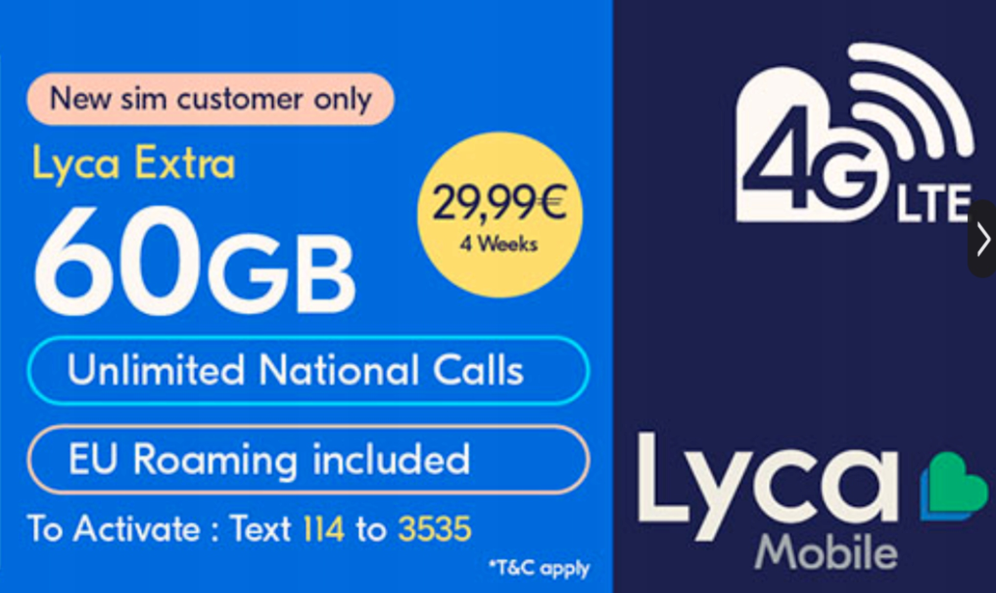Lyca Extra стоит 29,99 евро. / 4 недели