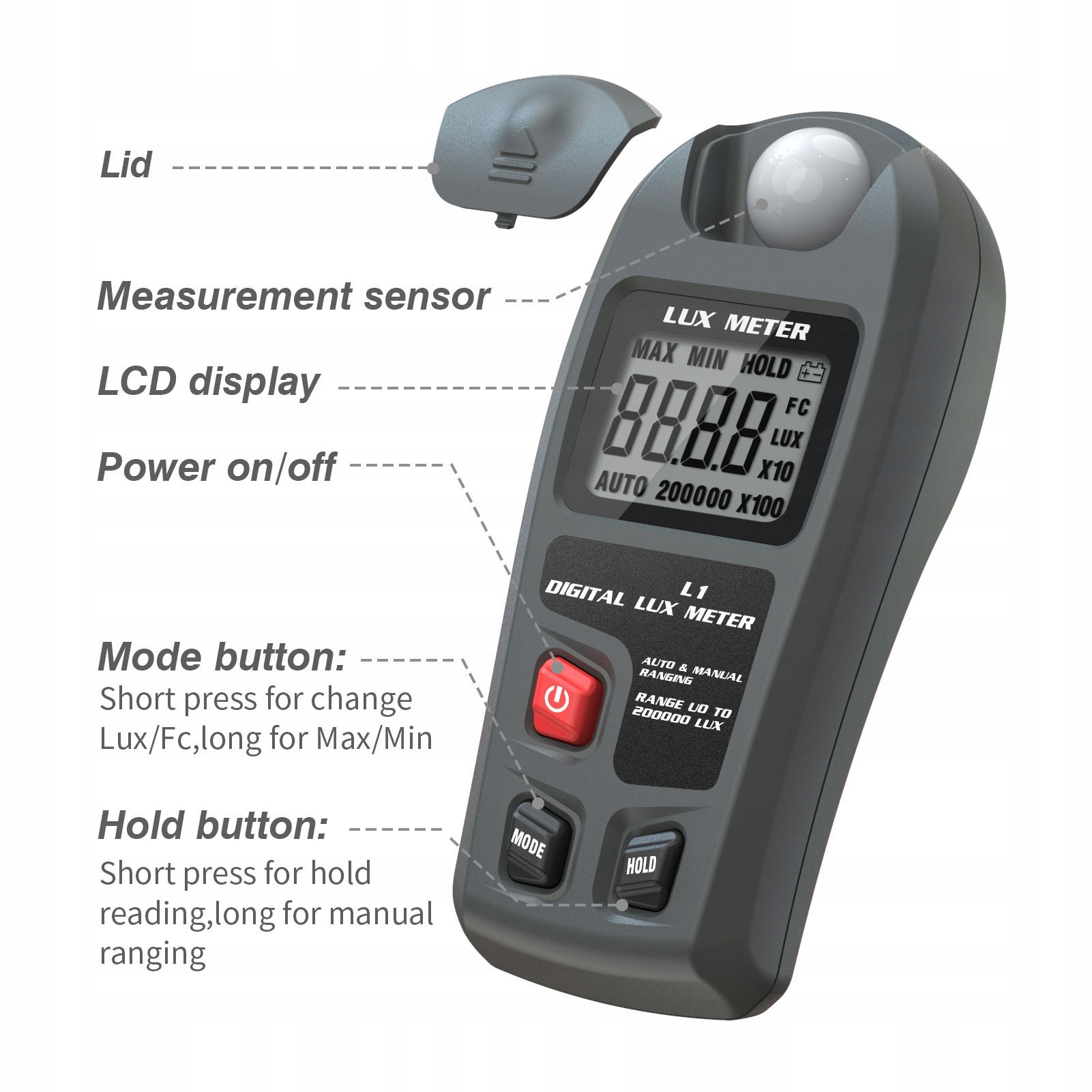 Диапазон измерений: 0,1 ~ 20 000 люкс, 0,01 ~ 20000 фк