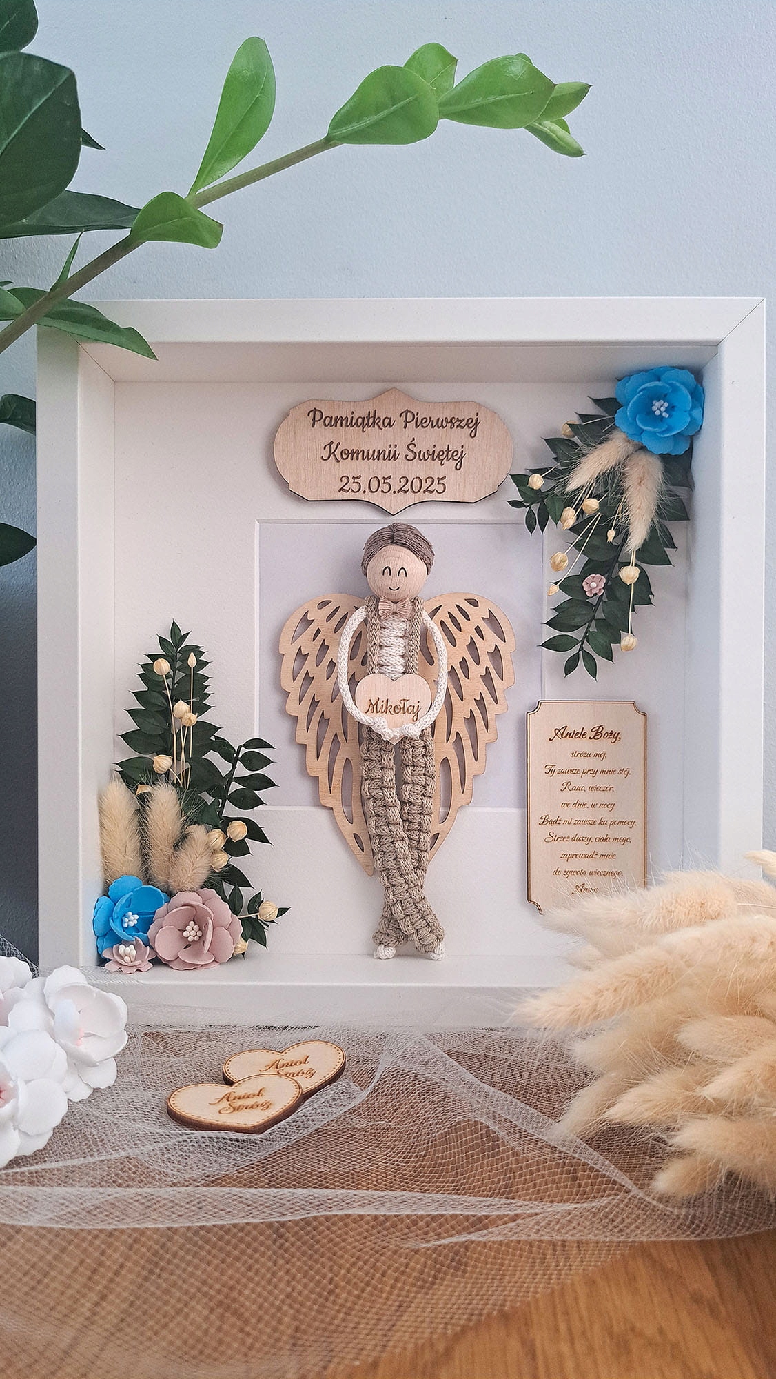 ✅ Мы представляем уникальный макраме ручной работы в фото кадре, идеально подходящего для подарка по случаю первого святого причастия.