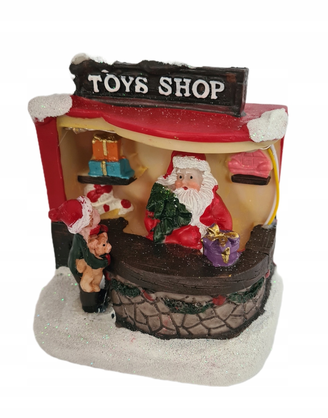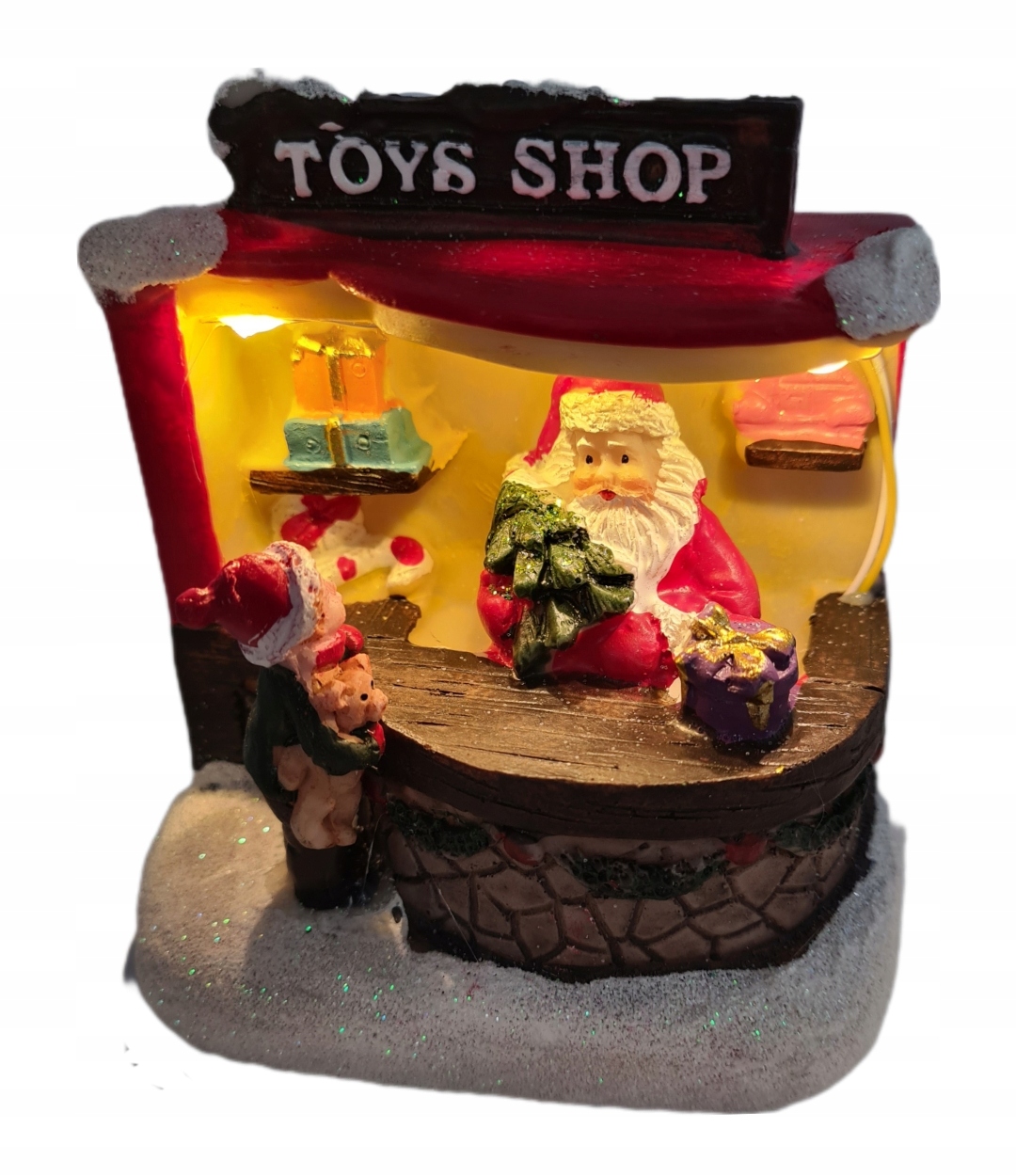 Рождественская сценка с Дедом Морозом, торгующим игрушками, блестками, светодиодной подсветкой.