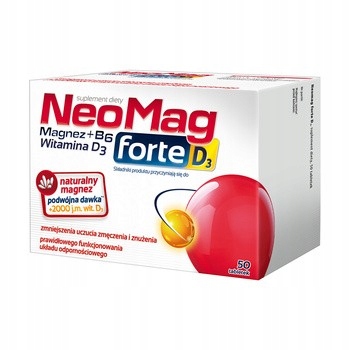 Пищевая добавка Neomag forte D3 содержит магний, который способствует снижению усталости и усталости и поддержанию надлежащего энергетического метаболизма. Это помогает в поддержании баланса электролита, при правильном функционировании нервной системы и мышц, в поддержании нормальных психологических функций, а также здоровых костей и зубов. Магний также играет роль в процессах клеточного деления и помогает в правильном синтезе белка.