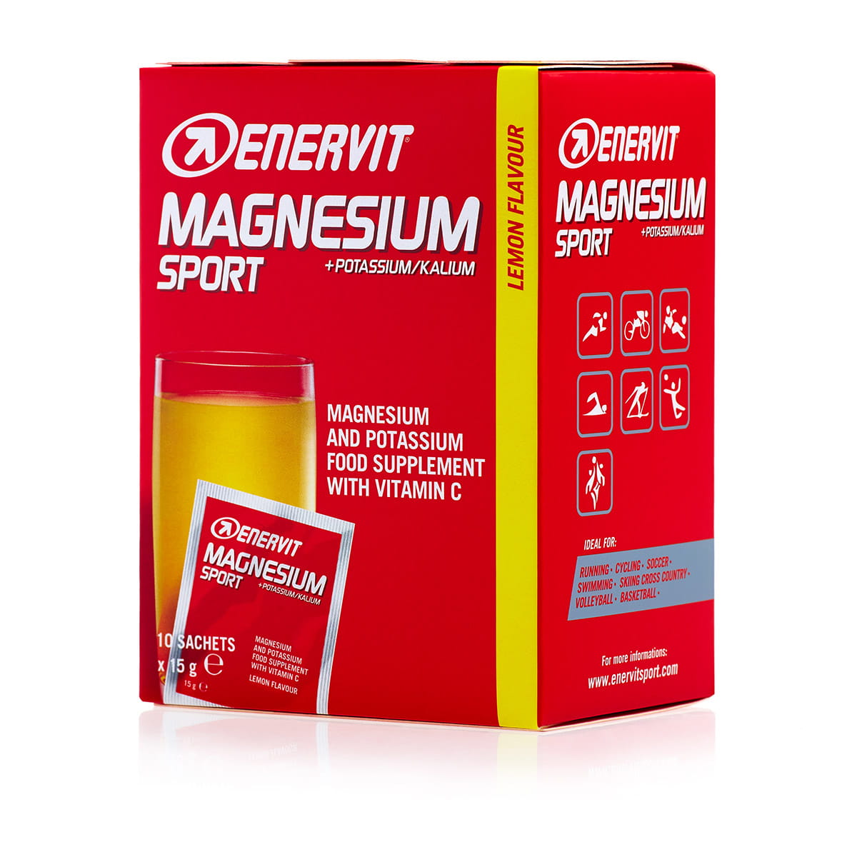 <р> - противодействие мышечным спазмам <р> - прием минеральных солей при повышенном потоотделении <р> - поддержка тренировок при высоких температурах окружающей среды <р> - высокое содержание калия – 600 мг <р> - высокое содержание магния – 160 мг <р> - добавлен витамин С – 80 мг <р> Enervit Sport Магний с калием — это пищевая добавка, содержащая магний, калий и витамин С, которую следует принимать в случае снижения потребления или увеличения потребности в этих элементах. Способ пополнения запасов калия и магния перед стартом. Употребление препарата за несколько дней до соревнований помогает предотвратить мышечные судороги во время физических упражнений в видах спорта на выносливость и сверхвыносливость. В одном пакетике содержится до 600 мг калия, 160 мг магния и 80 мг витамина С. Продукт показан для восполнения потерь минеральных солей в случае повышенного потоотделения, тренировок при высоких температурах окружающей среды или после физических упражнений. р> <р> Применение: Растворяйте один пакетик в день в стакане негазированной воды (200 мл). Рекомендуется использовать один пакетик в день, желательно утром. Перед соревнованиями рекомендуется использовать по 2 пакетика в день, за 3 дня до старта и в день старта. <р> Предупреждение: хранить в сухом и прохладном месте. Продукт не является заменой разнообразного питания. Продукт следует использовать в рамках разнообразного и сбалансированного питания и здорового образа жизни. Хранить в недоступном для детей младше 3 лет. Хранить в сухом и прохладном месте. <р> Формат: пакетики 10 х 15 г <р> Состав: сахароза (65,3%), трикалийцитрат (11,2%), цитрат магния (10,5%), подкислитель: лимонная кислота; регулятор кислотности: цитрат натрия; кукурузный крахмал, ароматизаторы, загуститель: карбоксиметилцеллюлоза натрия; L-аскорбиновая кислота, антислеживатель: диоксид кремния; подсластитель: сукралоза; краситель: куркумин. Может содержать следы злаков, содержащих глютен, яиц, сои, молока, кунжута, орехов. <р> Пищевая ценность: <р> 1 пакетик (15 г) <р> *%ZDS <р> Калий <р> 600 мг <р> 30% <р> Магний <р> 160 мг <р> 43 % <р> Витамин С <р> 80 г <р> 100 % <р> Ингредиенты: <р> сахароза (65,3%), трикалия цитрат (11,2%), цитрат магния (10,5%), подкислитель: лимонная кислота; регулятор кислотности: цитрат натрия; кукурузный крахмал, ароматизаторы, загуститель: карбоксиметилцеллюлоза натрия; L-аскорбиновая кислота, антислеживатель: диоксид кремния; подсластитель: сукралоза; краситель: куркумин. Может содержать следы злаков, содержащих глютен, яиц, сои, молока, кунжута, орехов.