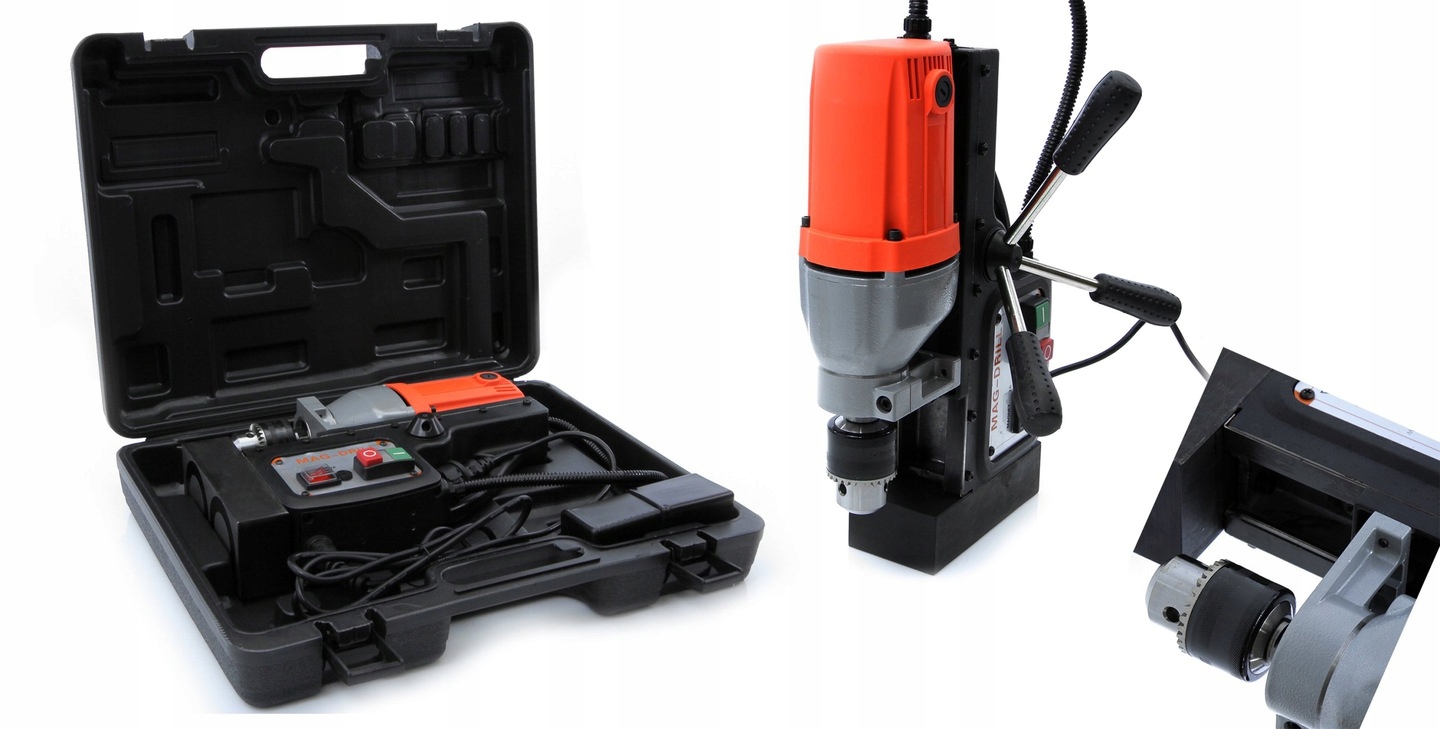 Дрель заземлена, а ее сила магнитного основания составляет 13 000 Н. После извлечения из корпуса устройство практически готово к использованию, вы необходимо лишь прикрепить буровой инструмент. p>