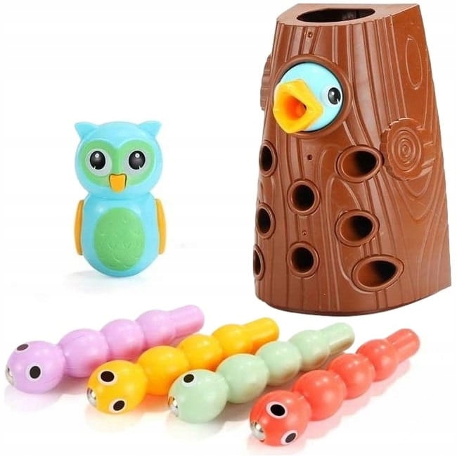 - Игра заключается в кормлении птенца разноцветными червячками с помощью совы с магнитом.