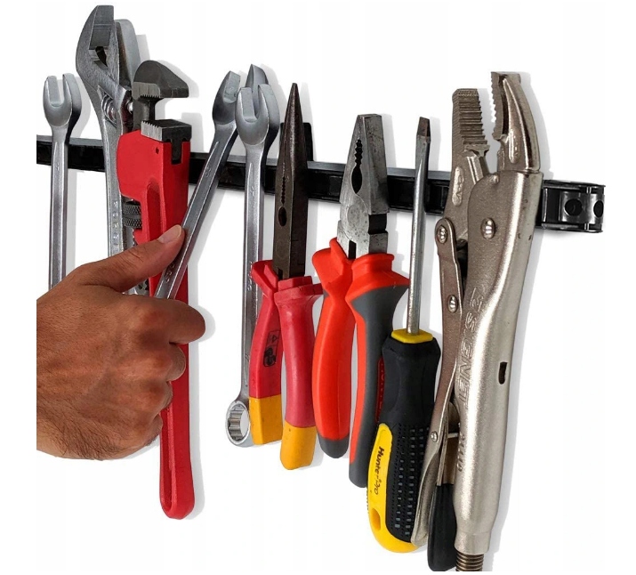 Магнитная полоса позволяет хранить различные типы инструментов. Он изготовлен из стального профиля, наполненного магнитом. Позволяет поддерживать порядок и отображать самые необходимые инструменты. В комплект входят крепежные штифты.