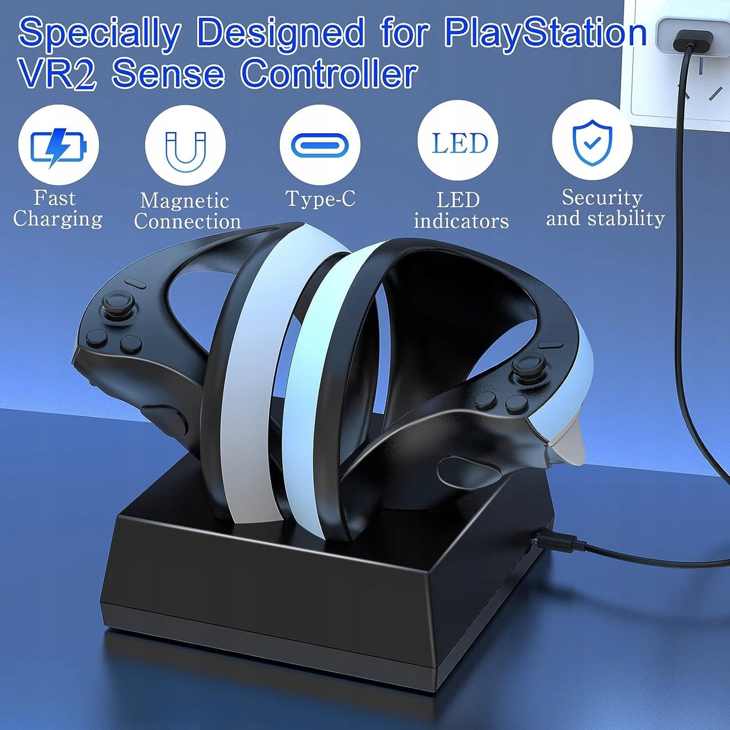[разработано для контроллеров Sony PS VR2] Станция зарядки STEBEAUTY PS VR2 с двумя магнитами типа C. Он может одновременно заряжать 2 PlayStation VR2 -контроллеры, контроллер, обнаруживающий автоматически адсорб и заряды. PS VR2 Зарядная станция зарядка для зарядки. Electrics. Зеленый свет включился после включения питания, красный свет включился, заряжая контроллеры Sense VR2, зеленый свет включился после полного заряда, два показателя соответствуют правой и правой зарядке контроллера. Вдумчивый дизайн эффективно предотвращает перемещение продукта при использовании продукта, обеспечивая более уютное использование