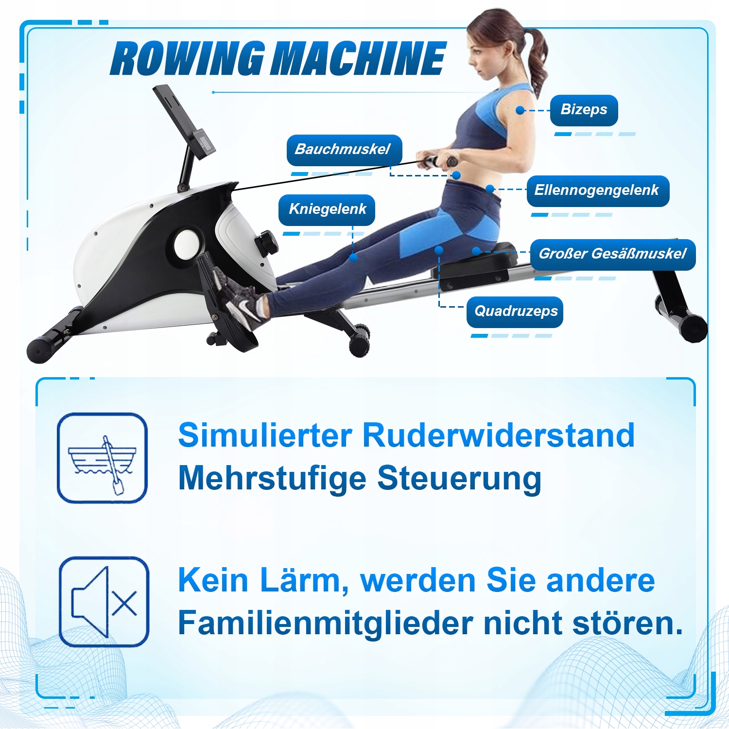 Магнитный греблиный компьютер, гребля для использования в помещении, с магнитной тормозной системой, ЖК-монитором и 8-уровневой регулировкой сопротивления, фитнес-оборудование (без прокладки)
