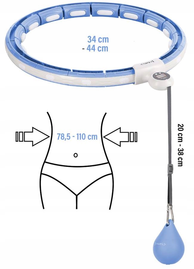 Быстро и удобно уменьшайте или увеличивайте размер колеса , просто отключите или подключите столько элементов, сколько вам нужно. HHM15 состоит из 16 элементов. Размер можно задать от 12 до 16 элементов, т.е. обхват талии от 78,5 см до 110 см (диаметр петли: от 34 см до 44 см). Благодаря этому устройство никогда не упадет во время тренировки, поэтому им смогут пользоваться даже новички.