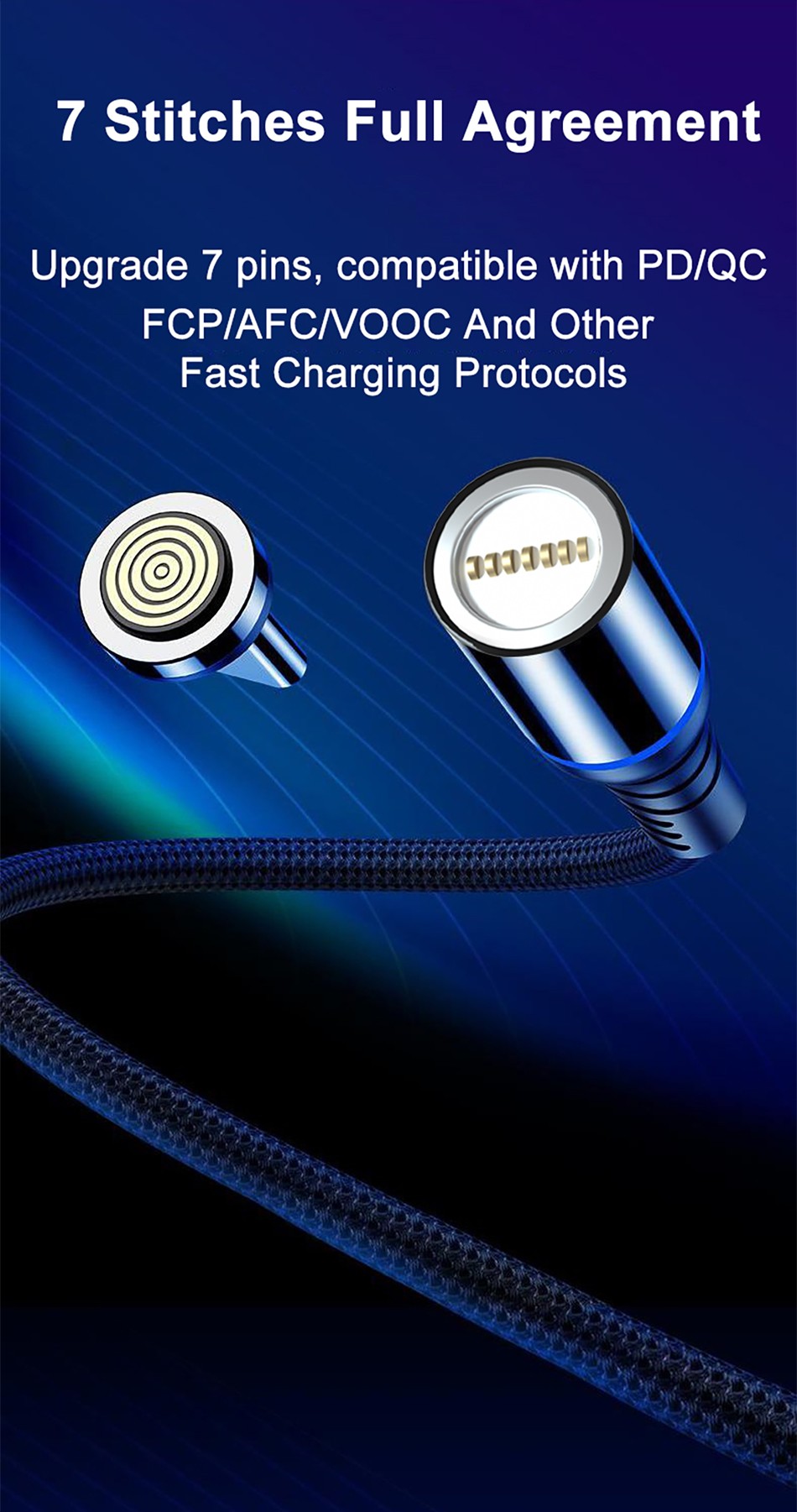 Магнитный USB-кабель 2 м 5 А для передачи данных 40 Вт 3 наконечника 7 шт.