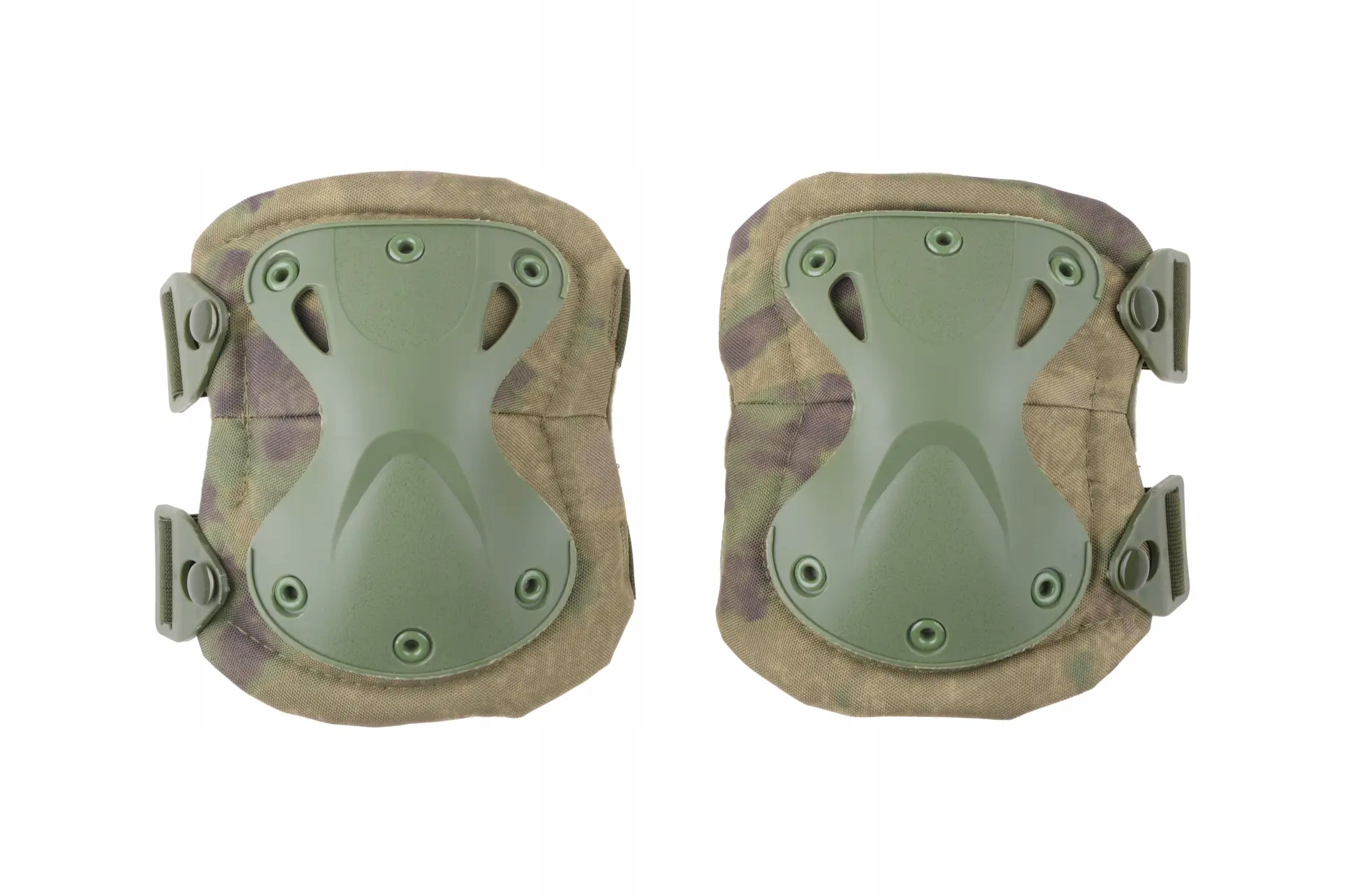 Оболочки крепятся заклепками. Наколенники оснащены гибкими ремнями для переноски с пряжками системы QD, что позволяет легко надевать и снимать протекторы без необходимости их регулировки.