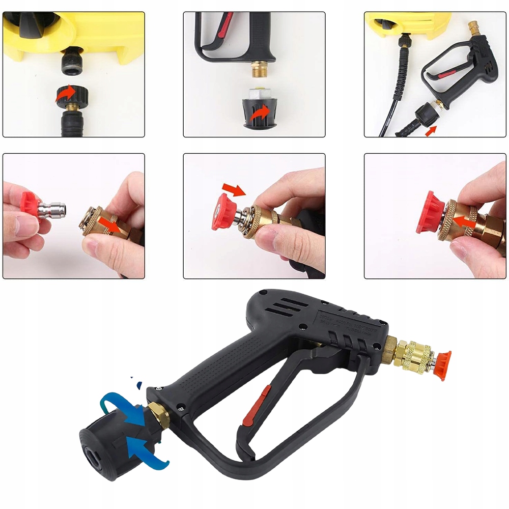 - ✅ Легкое соединение】: Этот пистолет с высоким давлением оснащена быстрого адаптера и разъема M22 (14 мм). головка пистолета оснащена быстрым 1/4 дюймом . Black Add -on -это прост в использовании и съемный адаптер, который можно легко установить на пистолете с системой сопла kärcher Quick Connect.