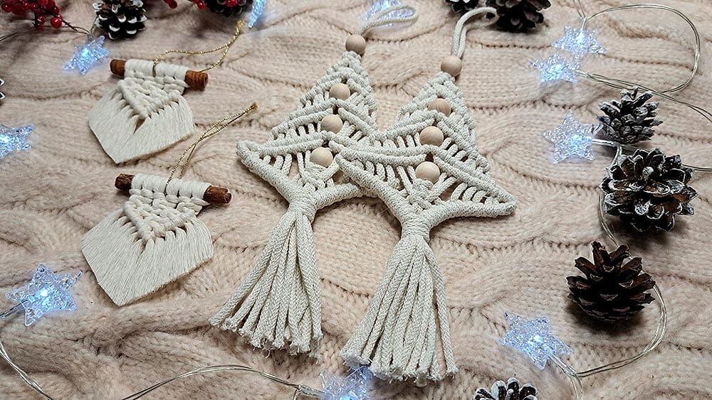 ✅ Рождественская елка из хлопковых струн с достойным переплетением и С деревянными бусинками добавляет элегантность. P>