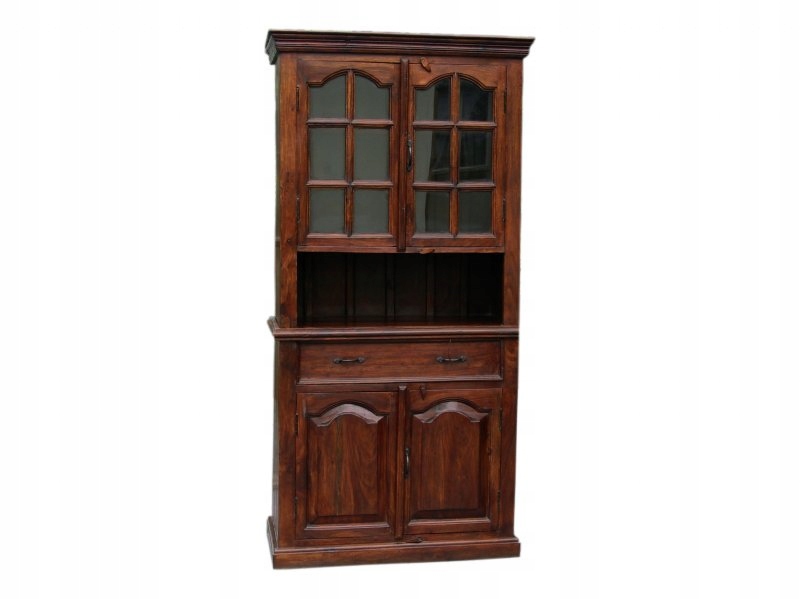 Колониальный сервант ручной работы из экзотической древесины (массив палисандра). В него входит стеклянная витрина – надстройка, размещенная на привлекательном комоде.