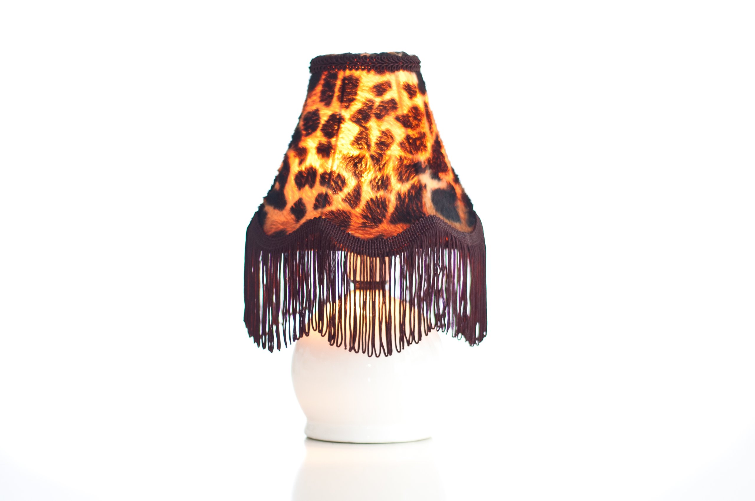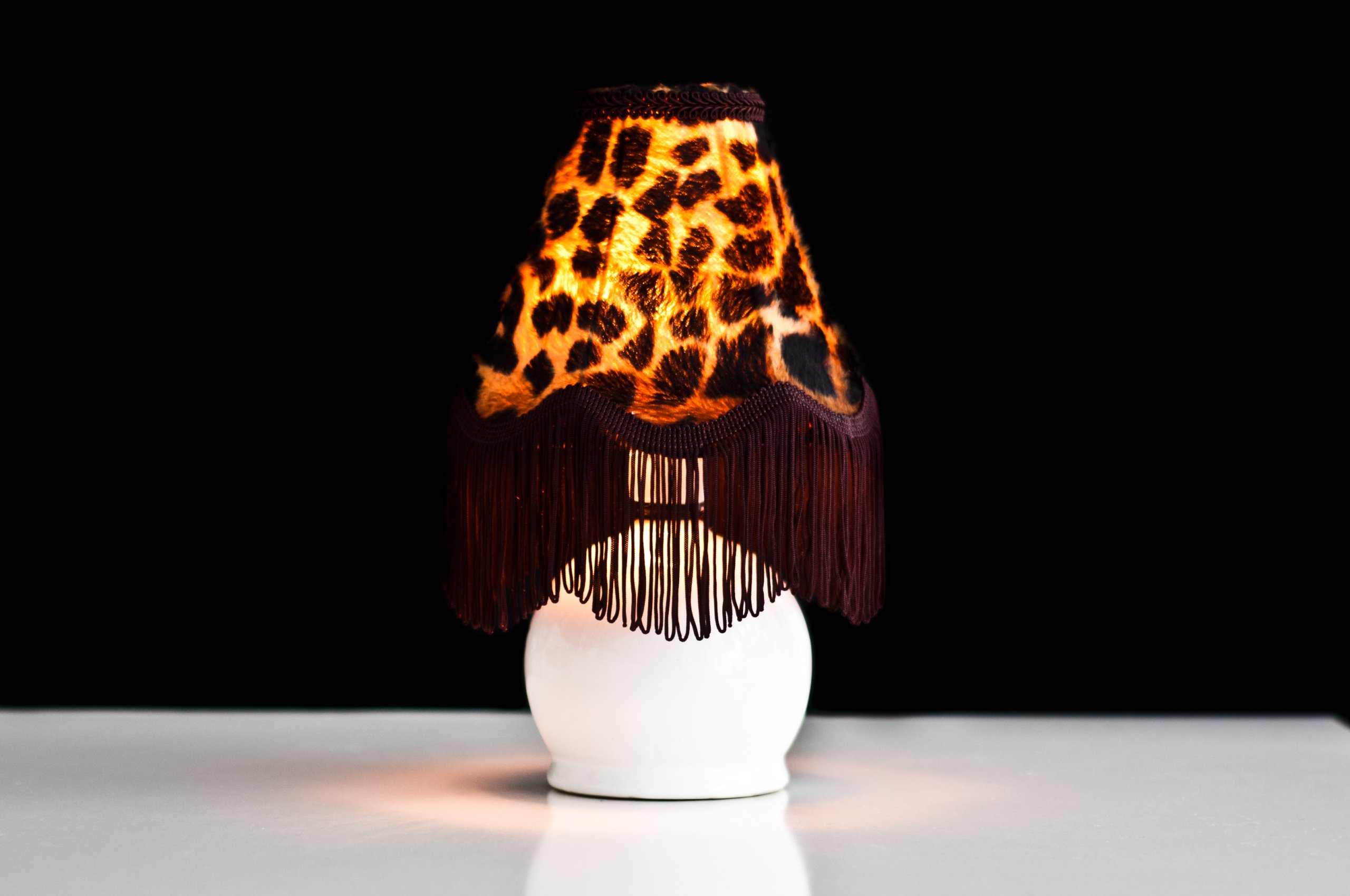 Абажур из коллекции Animals из ткани, имитирующей шкуру животного с приятной на ощупь шерстью, украшенной галантерейным декором. Это абажур для небольших светильников, бра и люстр.