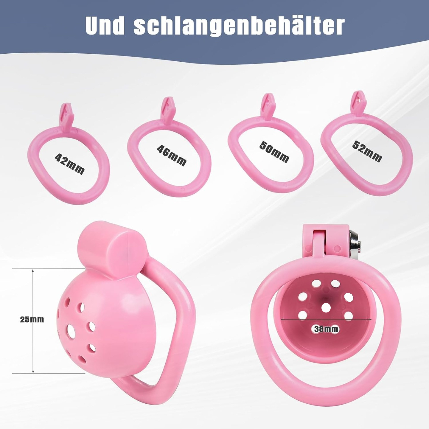 Маленький рожевий пояс цнотливості, клітка цнотливості SISSY, клітка для пеніса з 5 ущільнювальними кільцями