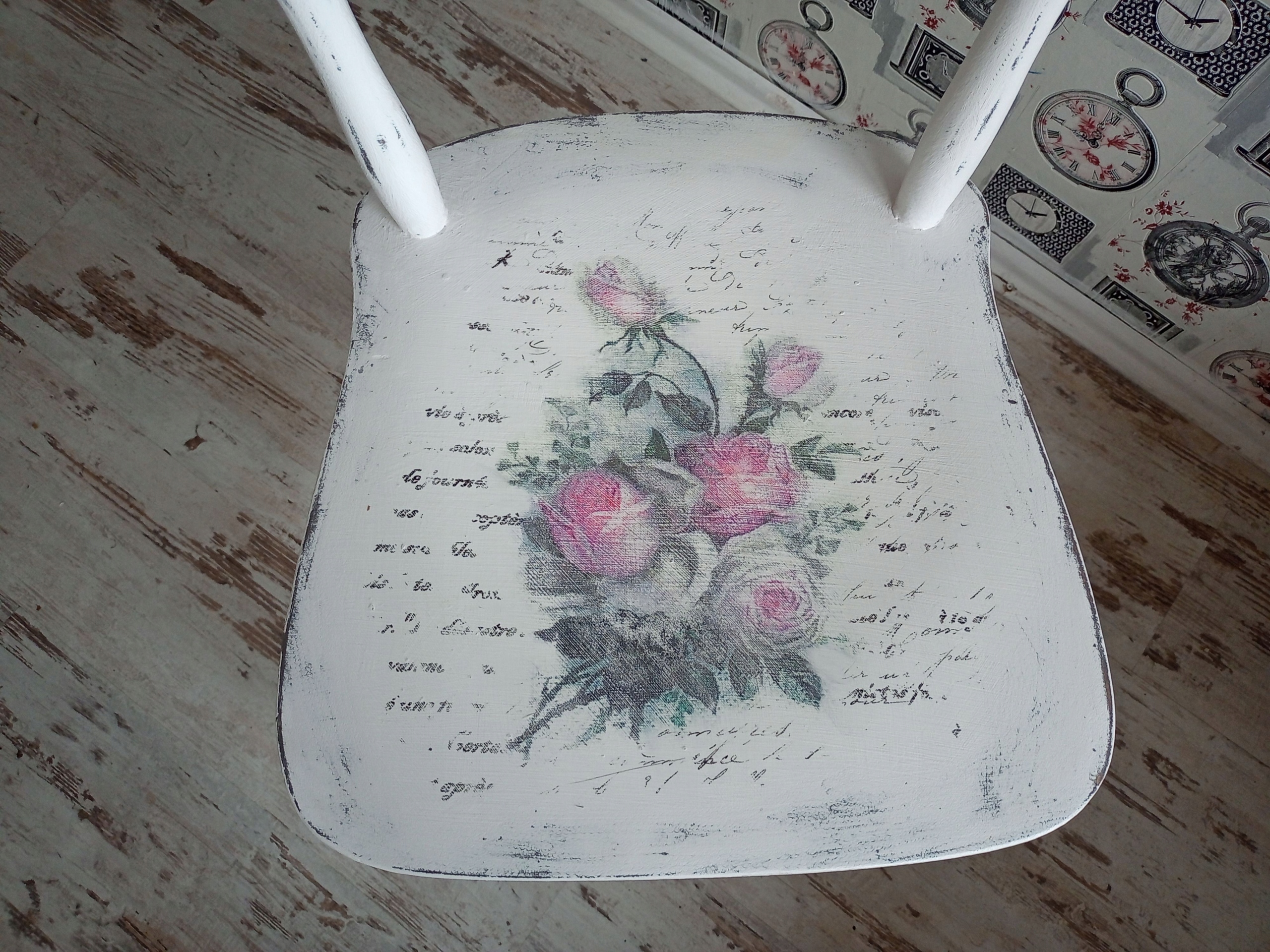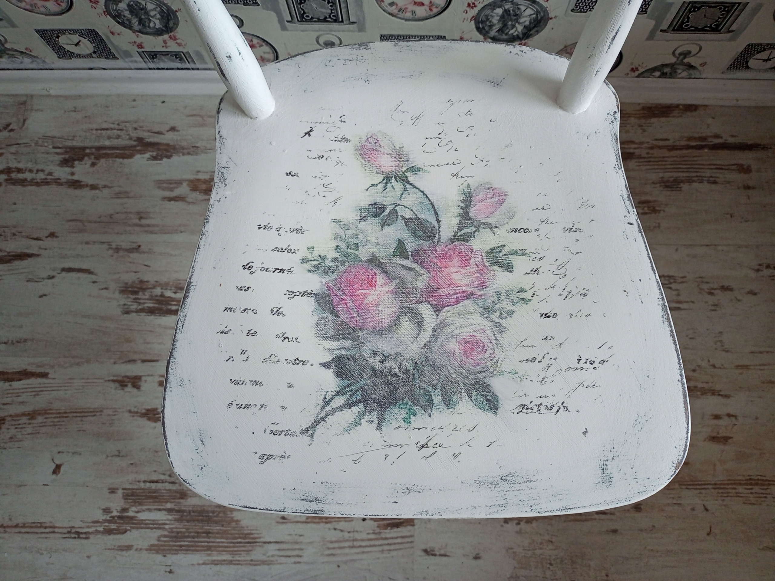 MALOWANE KRZESŁO, RÓŻE, SHABBY, PO RENOWACJI