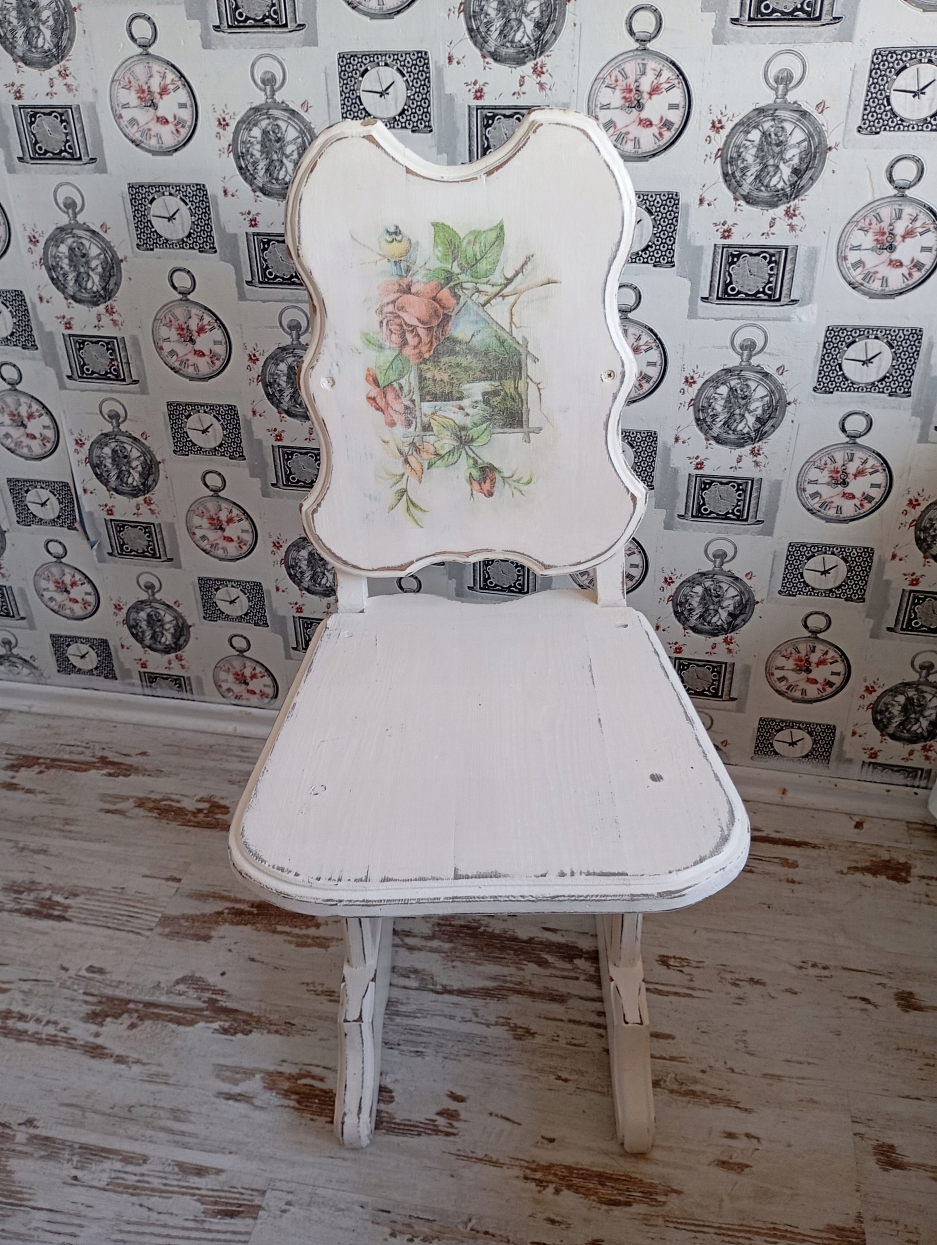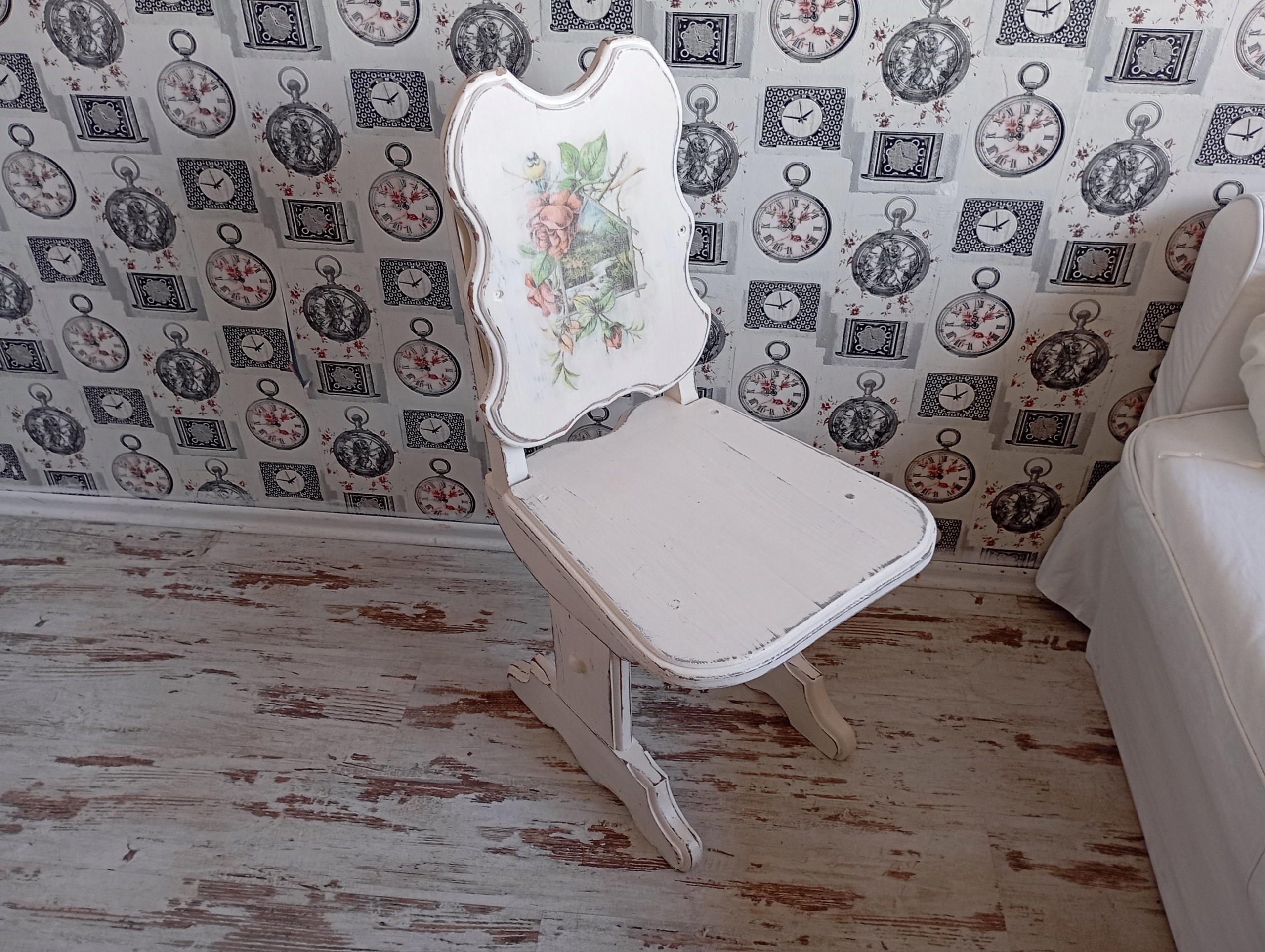 MALOWANE KRZESŁO Z SIELSKIM WIDOCZKIEM, SHABBY, PO RENOWACJI