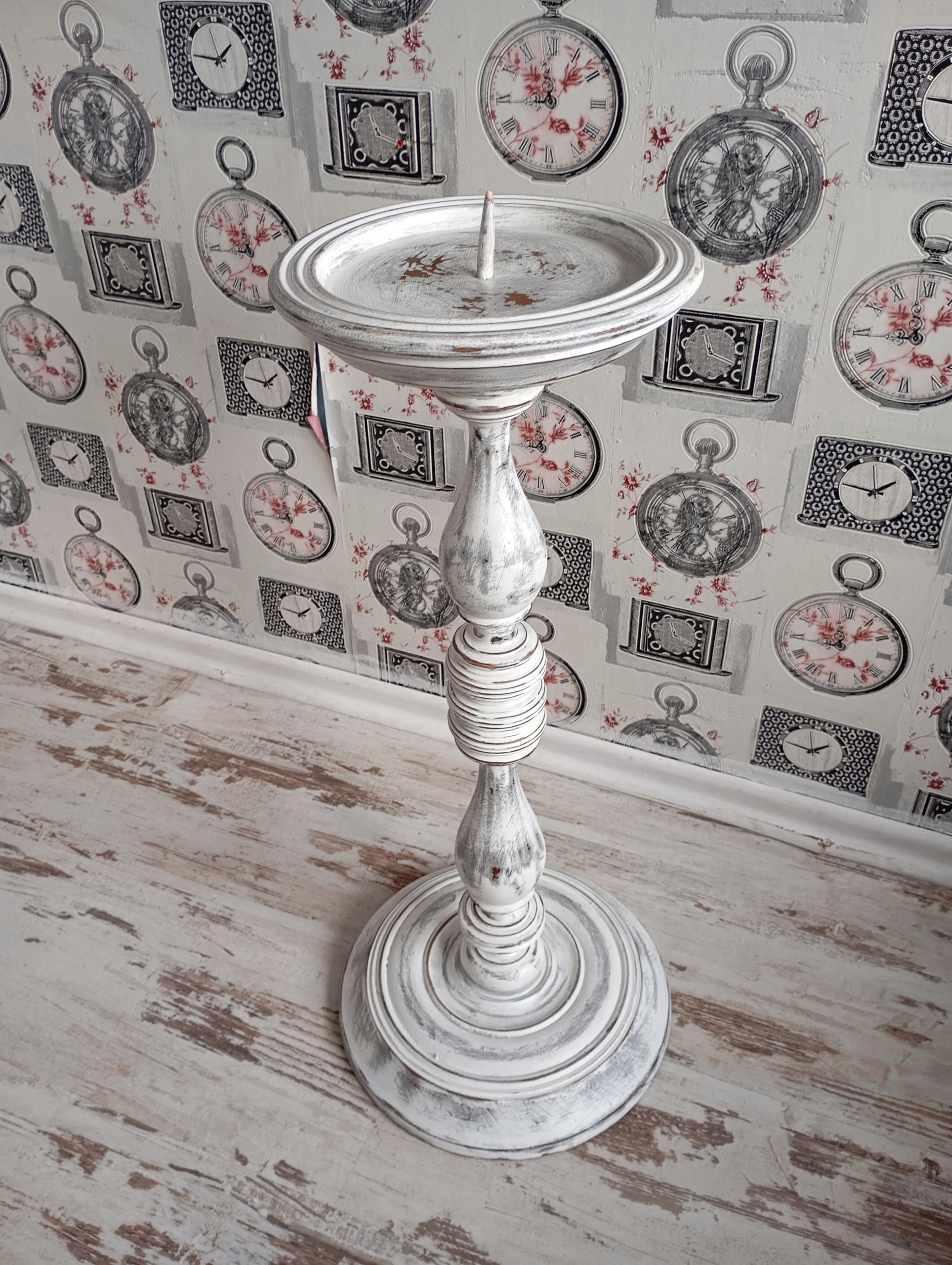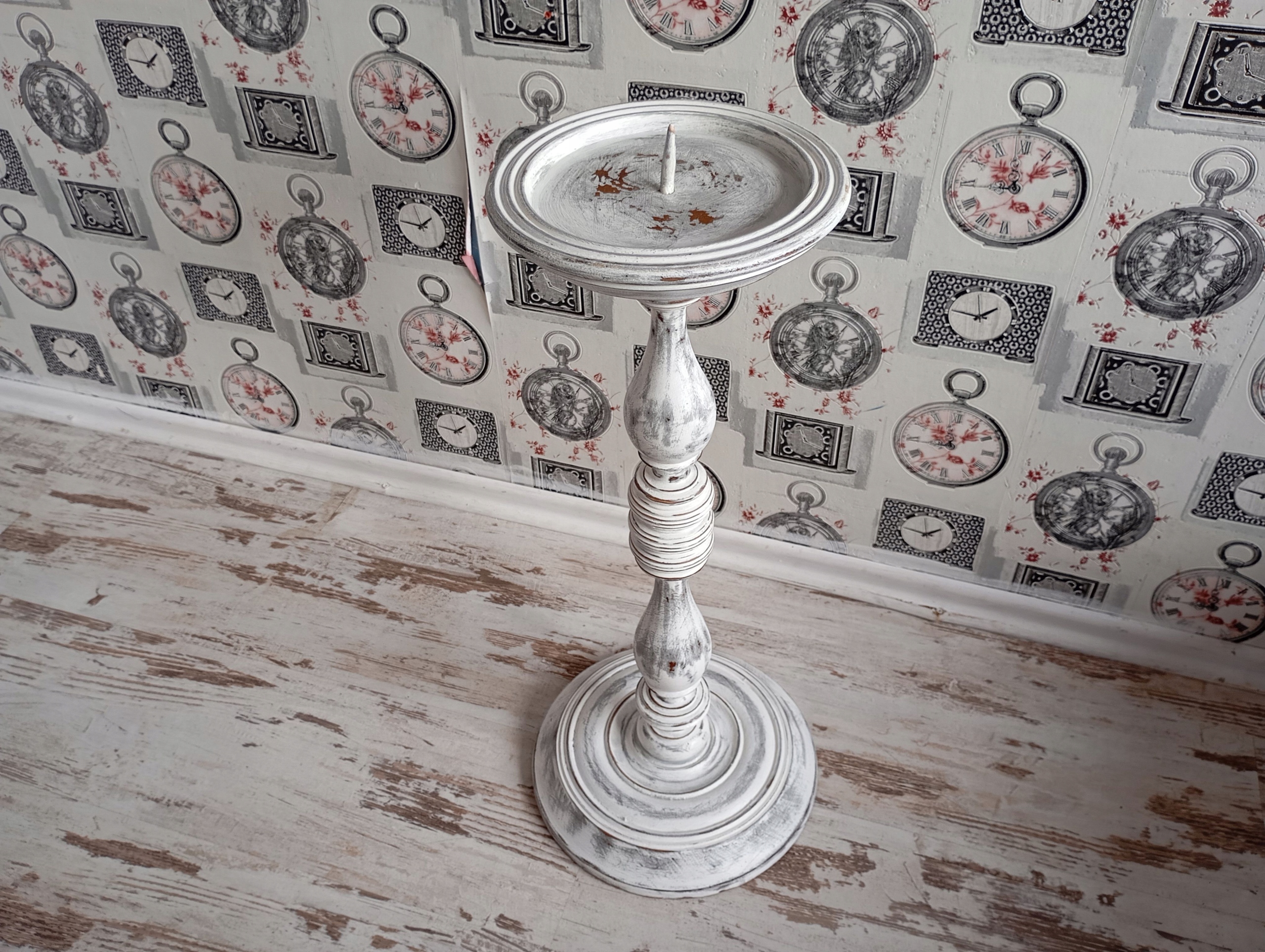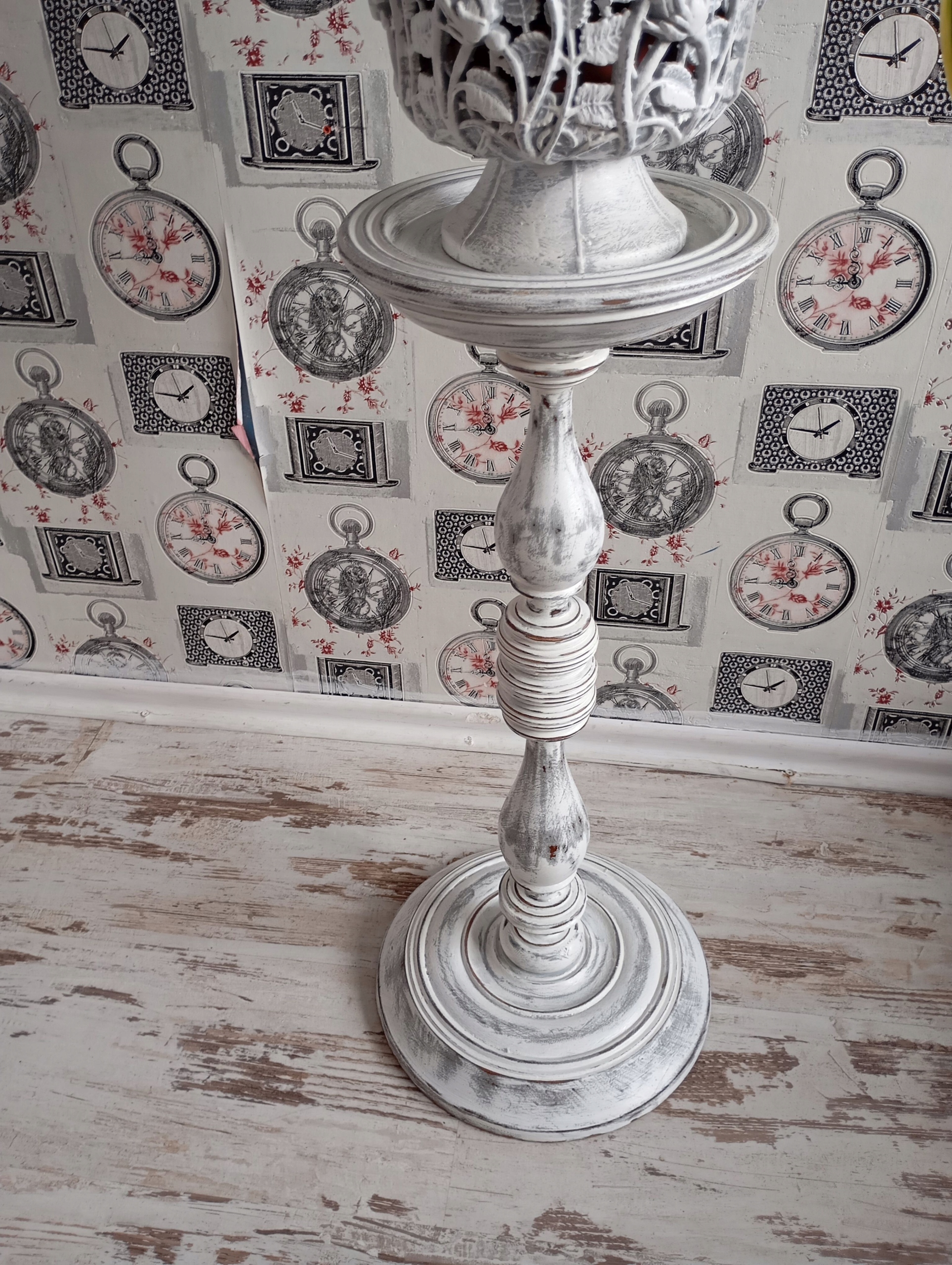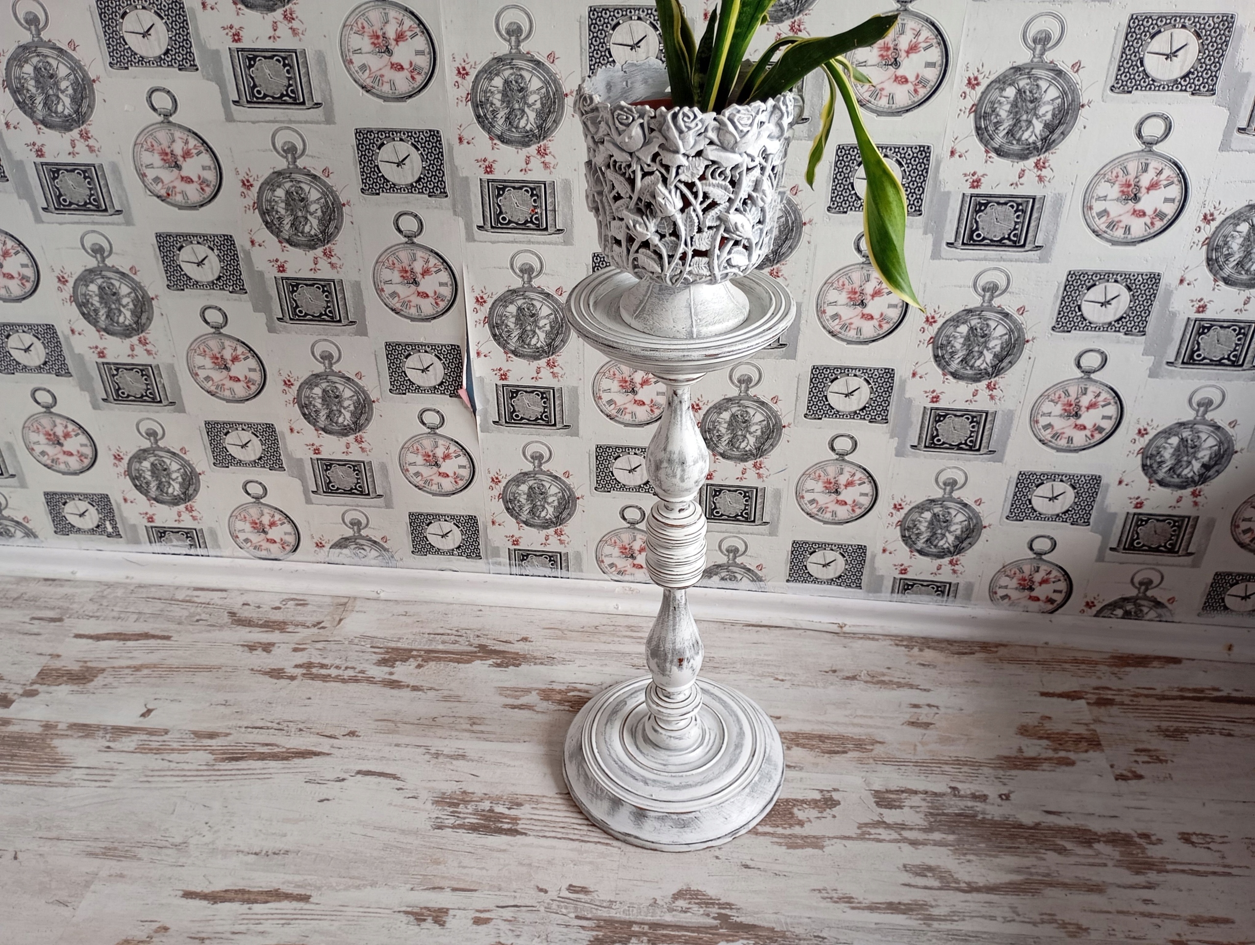 MALOWANY DREWNIANY KWIETNIK POSTUMENT ŚWIECZNIK SHABBY CHIC