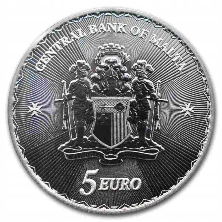 Центральный банк Мальты представляет серебряную монету «Мальтийский крест». На монете изображен мальтийский крест, который используется в гербах, медалях и эмблемах по всему миру. Его ветви расширяются от центра и заканчиваются двумя острыми вершинами.