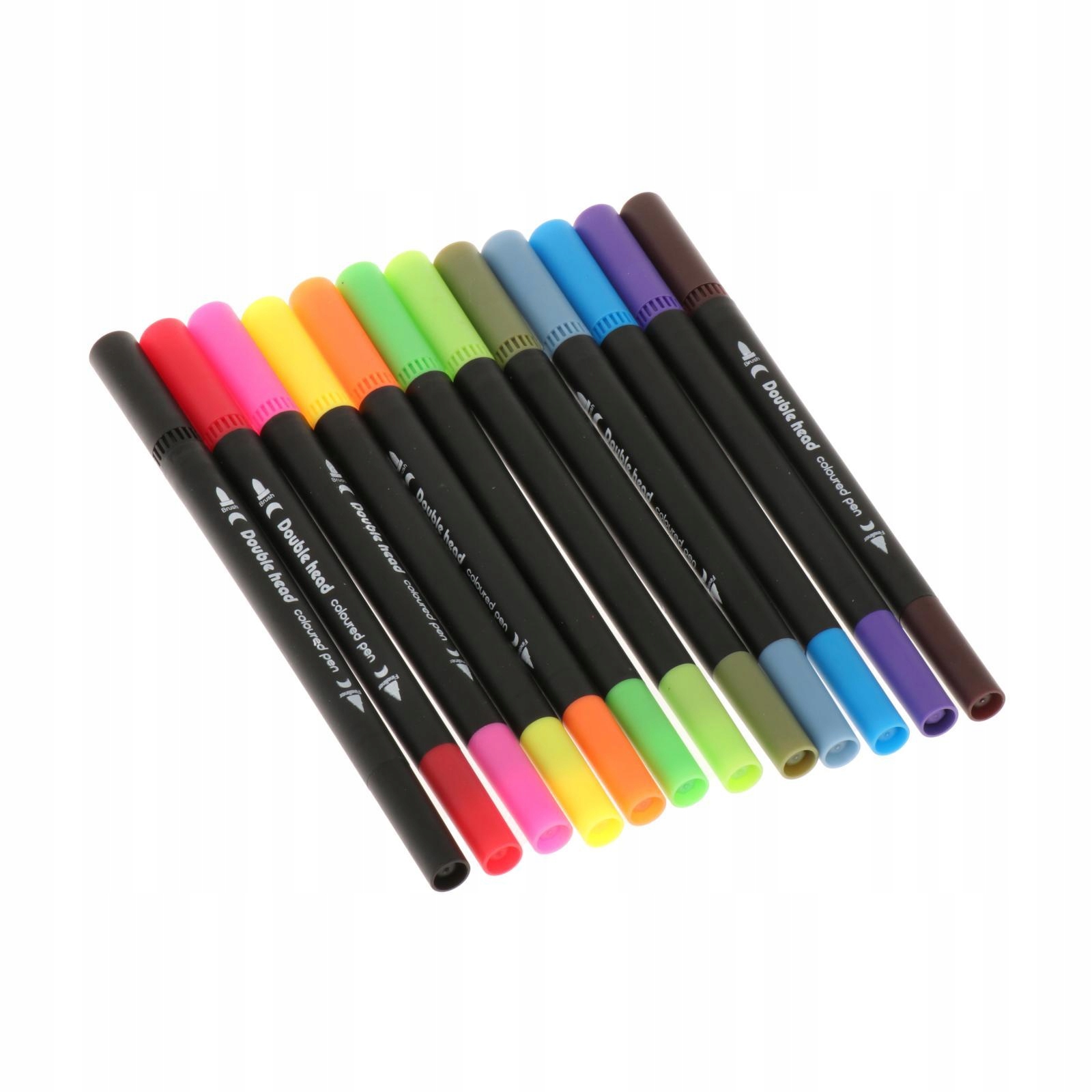 Маркеры живописи с двойным наконечником, 12 цветами, черные