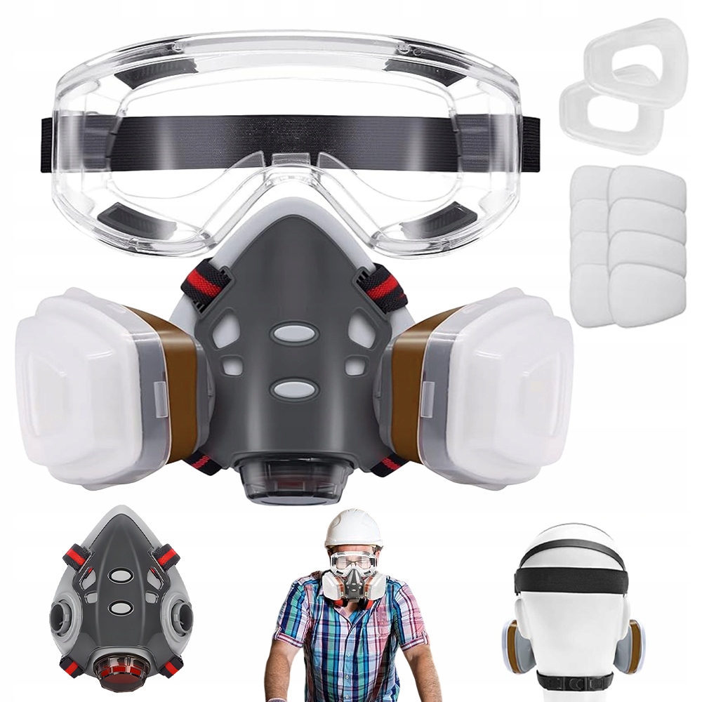 - Газовая маска с фильтром, гибкий регулируемый лук и крышка для лица подходит для большинства размеров головы. Чтобы работать более удобно и безопаснее, носите пылевую маску.